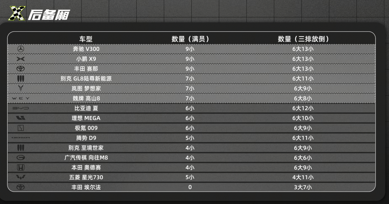 这次车辆很多,从十万级直跨百万级,那最后测试整体结果来说,单看麋鹿测试紧急避险上本田奥德赛表现出色,最让大家意想不到的就是五菱星光730 PHEV也以66km/h夺得前三。在AEB方面,新势力明显在智能系统上有绝对的优势,理想MEGA在感知反应上绝对强。还有加速/制动上,理想MEGA也是以5.95秒零百加速获得全场第一,百公里刹停上丰田塞那以38.58米成绩胜出。安全固然重要,MPV在空间上可以说是自带优势,既然“空间魔法师”就要在乘坐或者收纳都有一定空间。别克至境世家可以说是几乎兼得,当然大家可以去看看视频选择适合自己家庭的空间出行。
