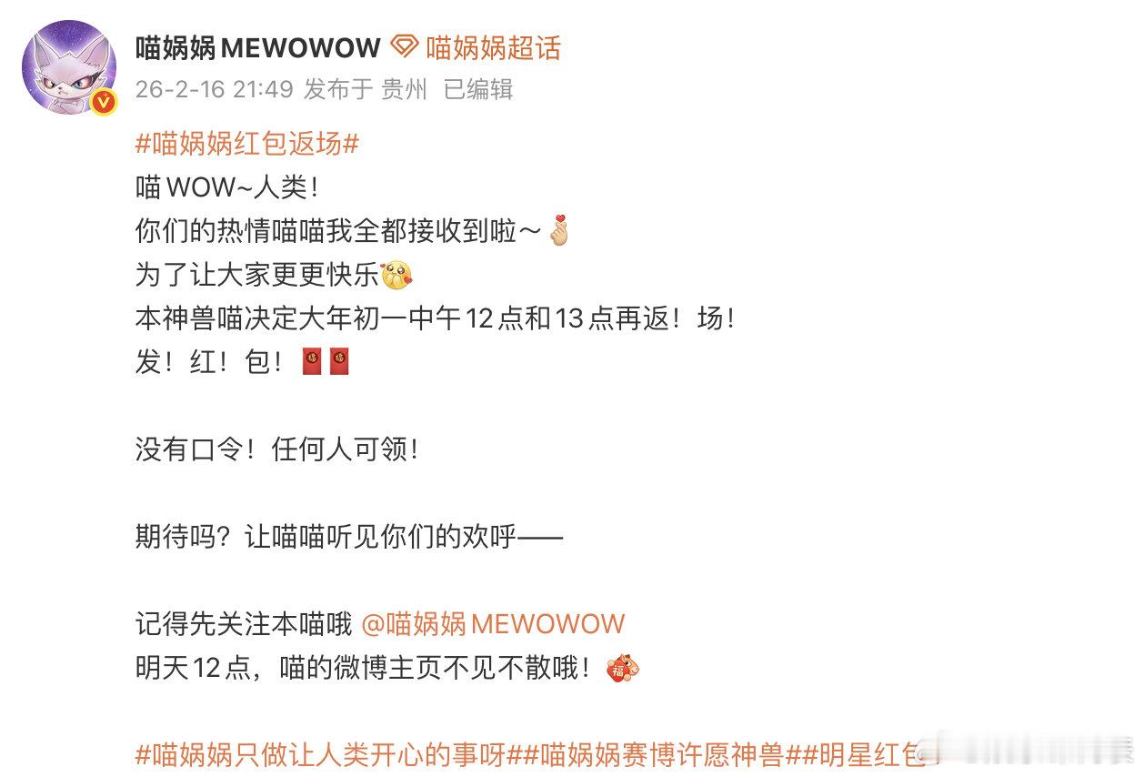 喵娲娲红包送完你的送你的全网最大方的猫出现了 简直是互联网亲生小猫🥹微博之夜门