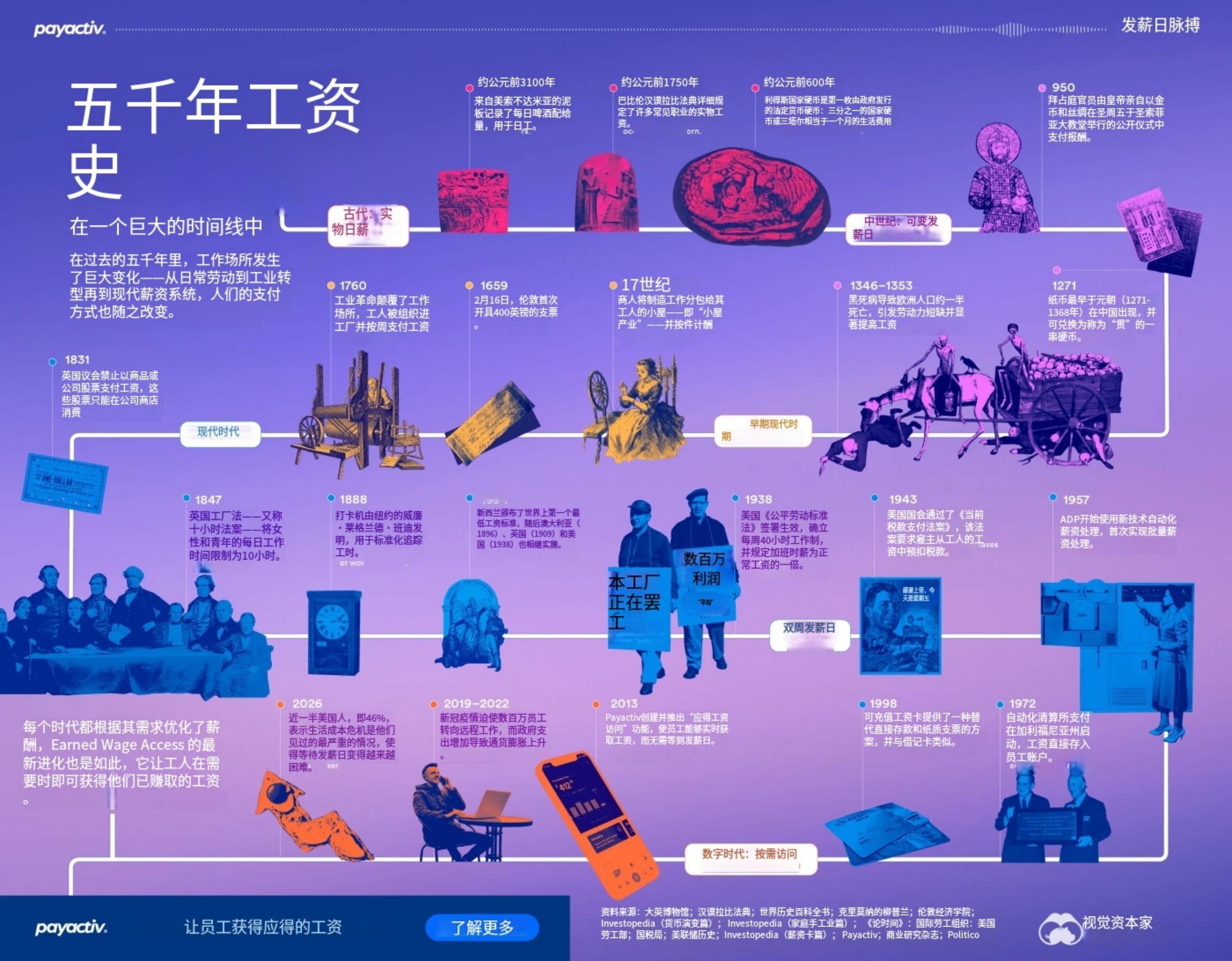 1659年,伦敦首次开支票。1760年工业革命,工人组织进工厂,按周付工资。