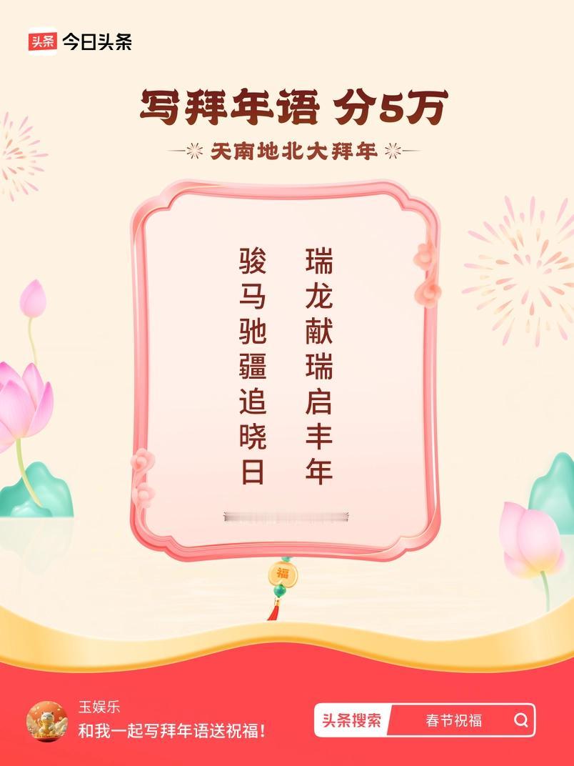 写拜年语送祝福新春拜年送祝福!我的祝福是:“骏马驰疆追晓日,瑞龙献瑞启丰年”!快