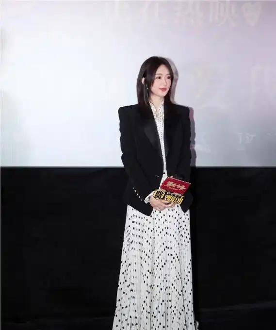 赵丽颖,她36岁的时候,身着黑色西装搭配波点半身裙登场亮相,不但时髦且带有洋气之感,还能够起到减龄并显得年轻的效果