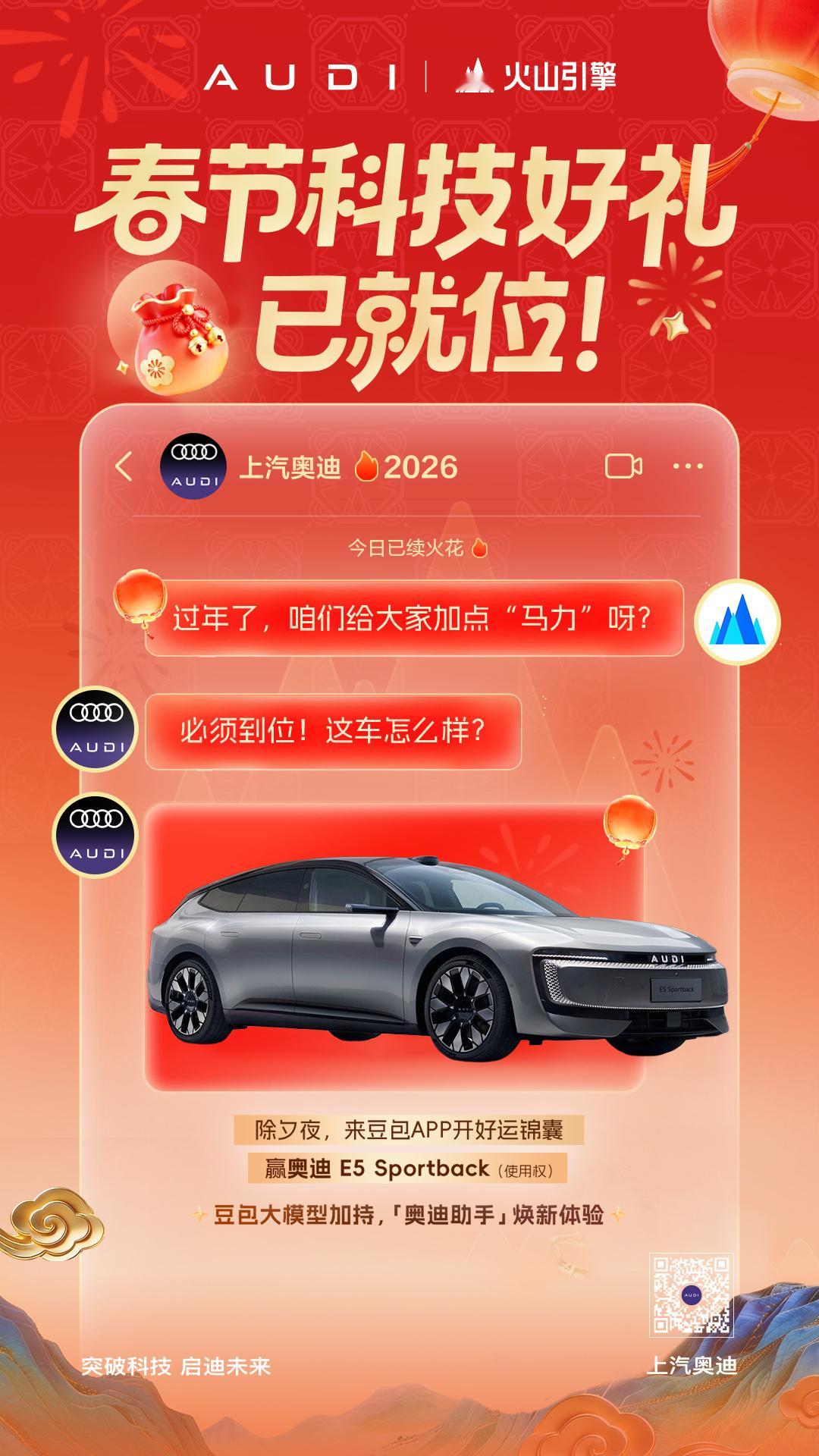 除夕夜豆包送出科技大礼,奥迪E5 Sportback重磅压轴,谁中了头彩真的慕了!