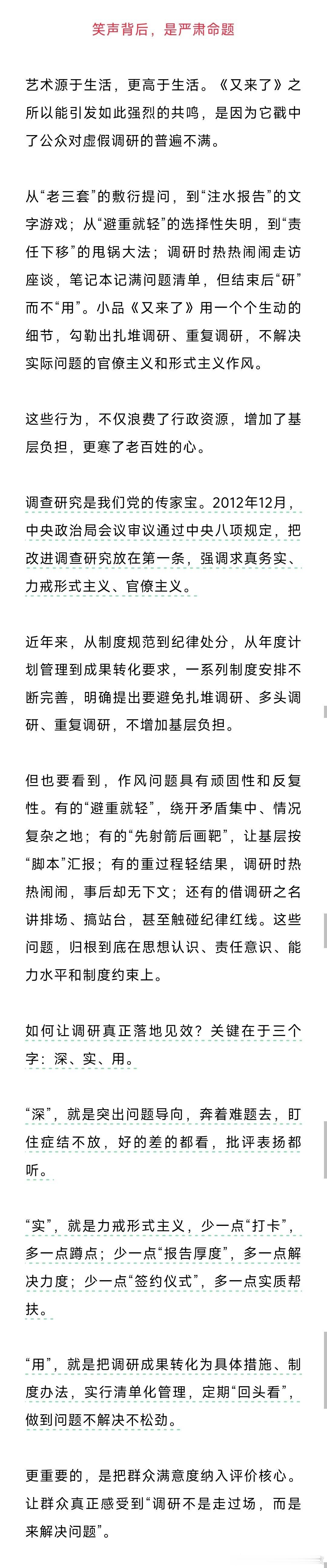 春晚 小品《又来了》 讲述了形式主义、打卡式调研、作秀式调研、不作为、推诿扯皮踢