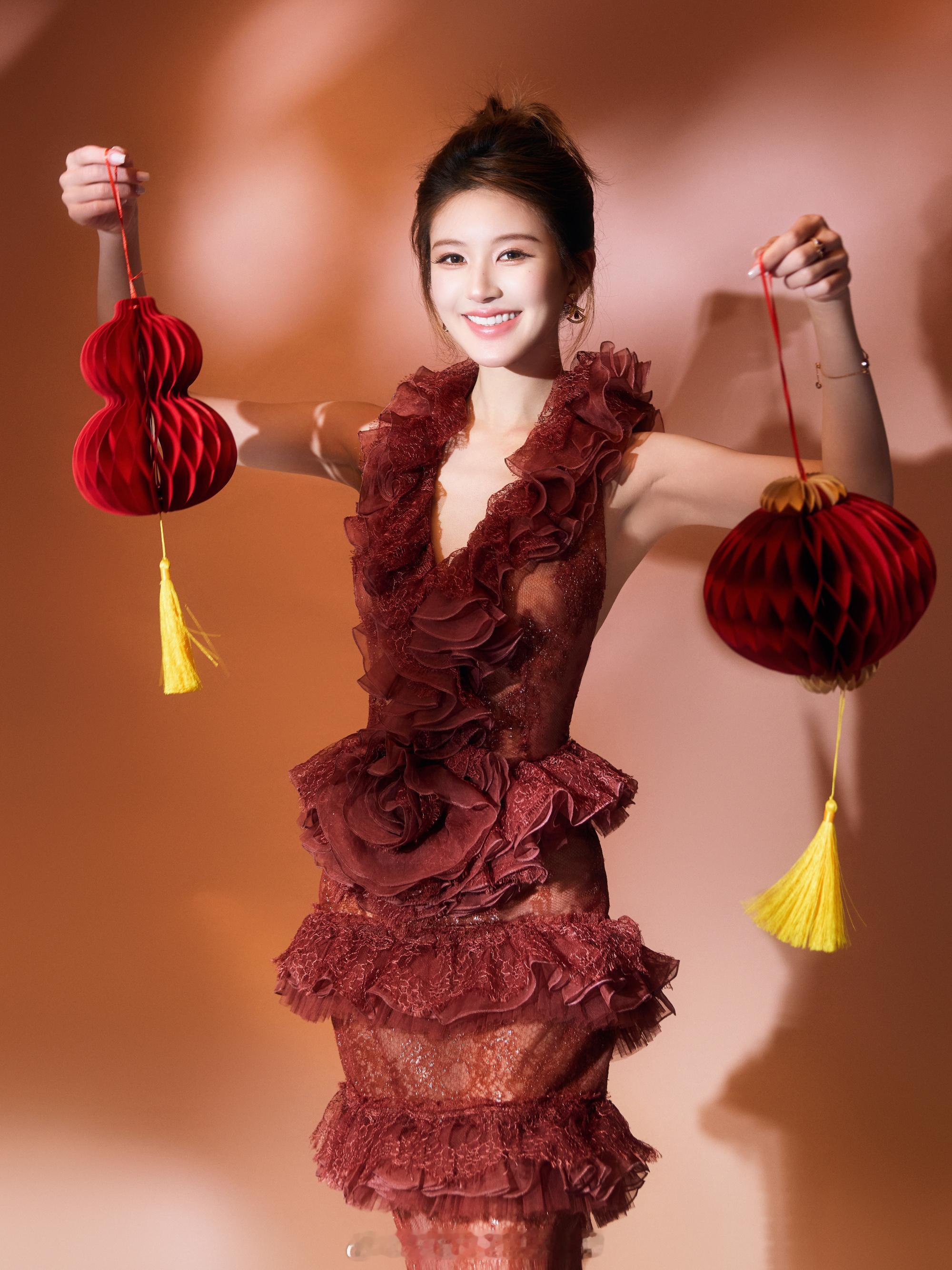 2月16日,杨紫带piupiu来给大家拜年啦穿红衣分享在《玉兰花开君再来》剧组