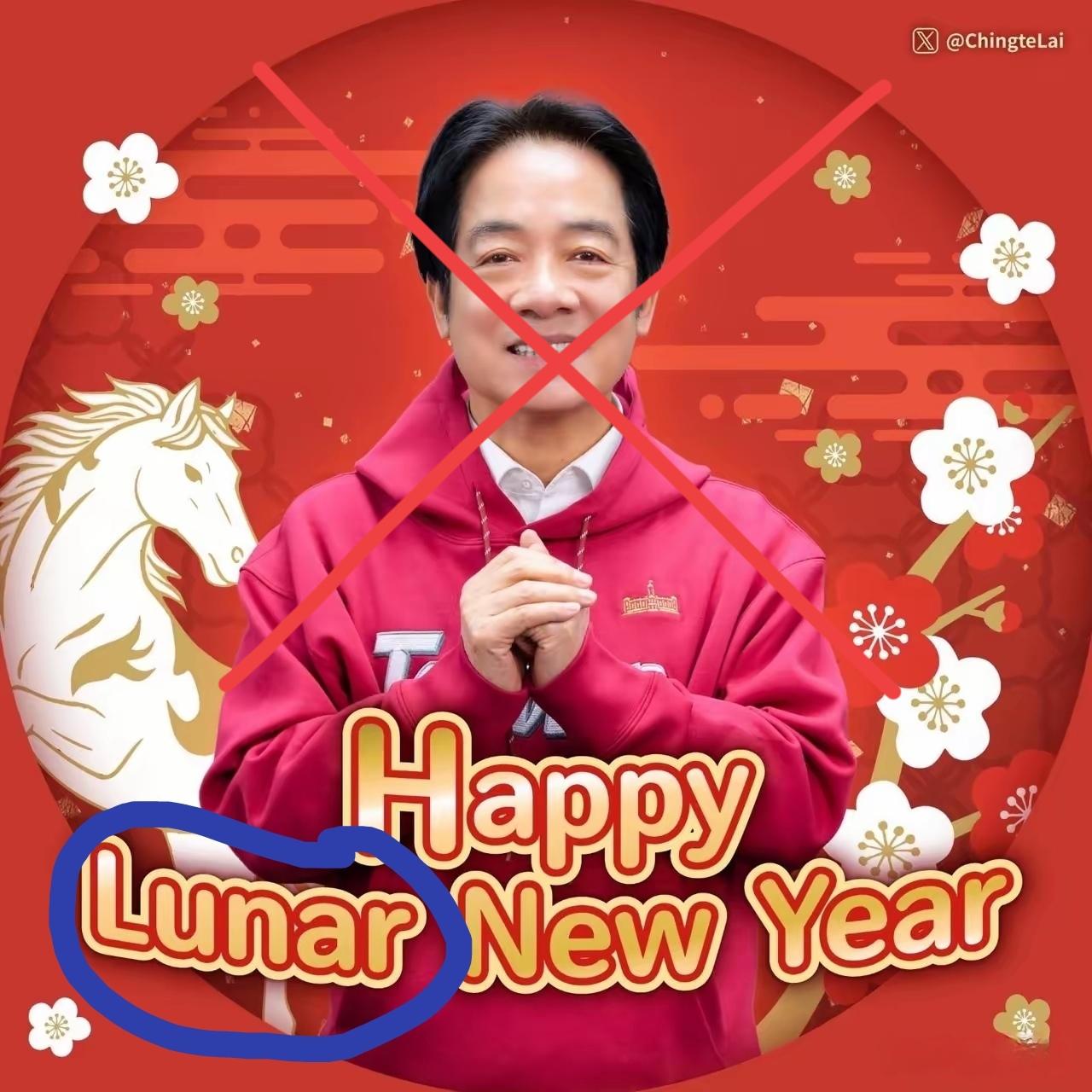 [看]“数典忘祖”赖清德,春节又来“添堵”了——不用“Chinese”,而用“lunar”[思考]看来,他连“两个中国”都不想搞,就是“纯粹台独”(qinrihanjian)[发怒]