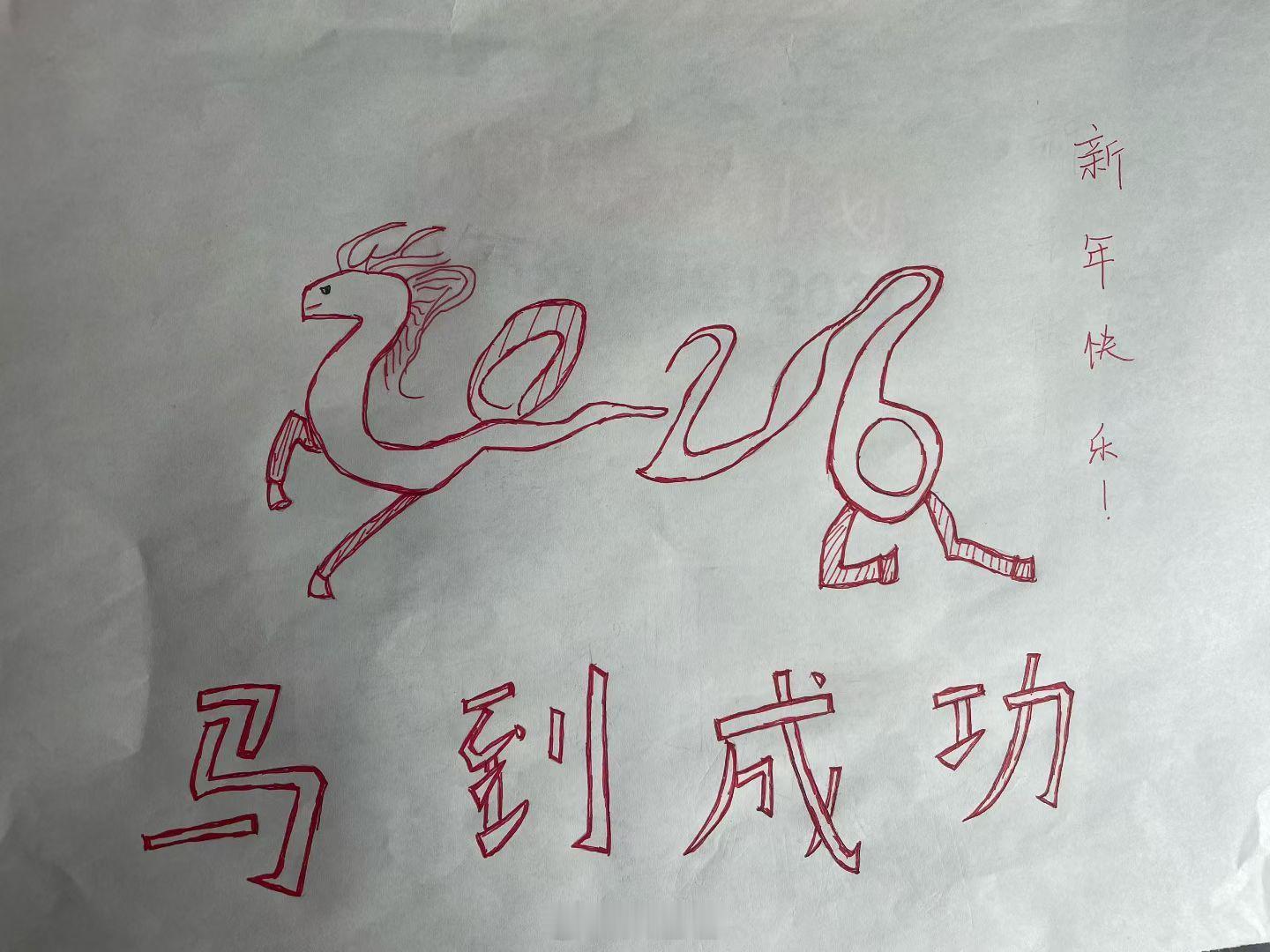 女儿 今年第一幅画祝大家🐎到成功用智搜高效过大年春节[音乐]