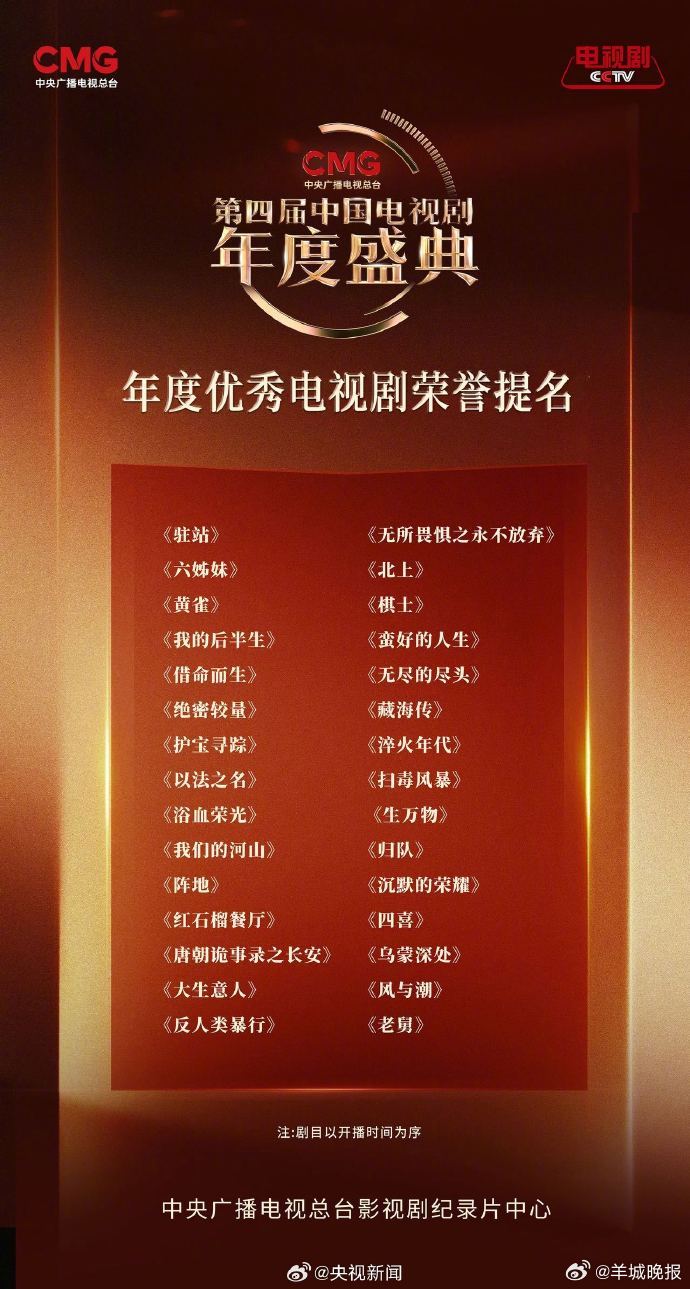 #值得一刷再刷的电视剧#【今晚,#CMG中国电视剧年度盛典#】#中国电视剧年度盛典荣誉提名#陆续发布↓↓你喜欢哪几部?分享推荐~关注,20点档揭晓!#红包##惊蛰无声##央妈不会找王一博赔地板吧##王一博郭富城 坚持手搓##沈腾 说错词#(央视新闻)(编辑:郑宗敏;审签:周乐瑞)