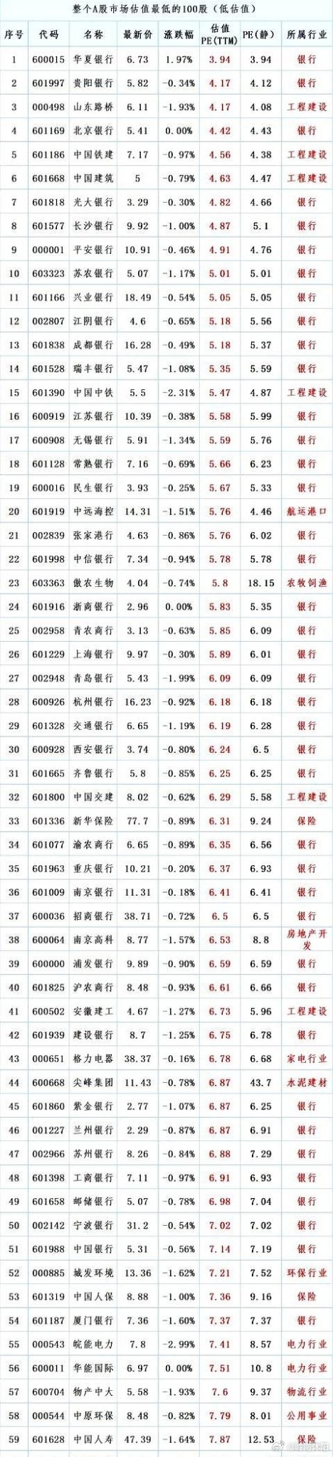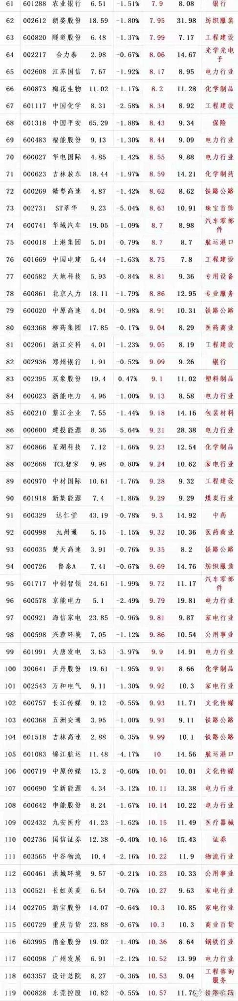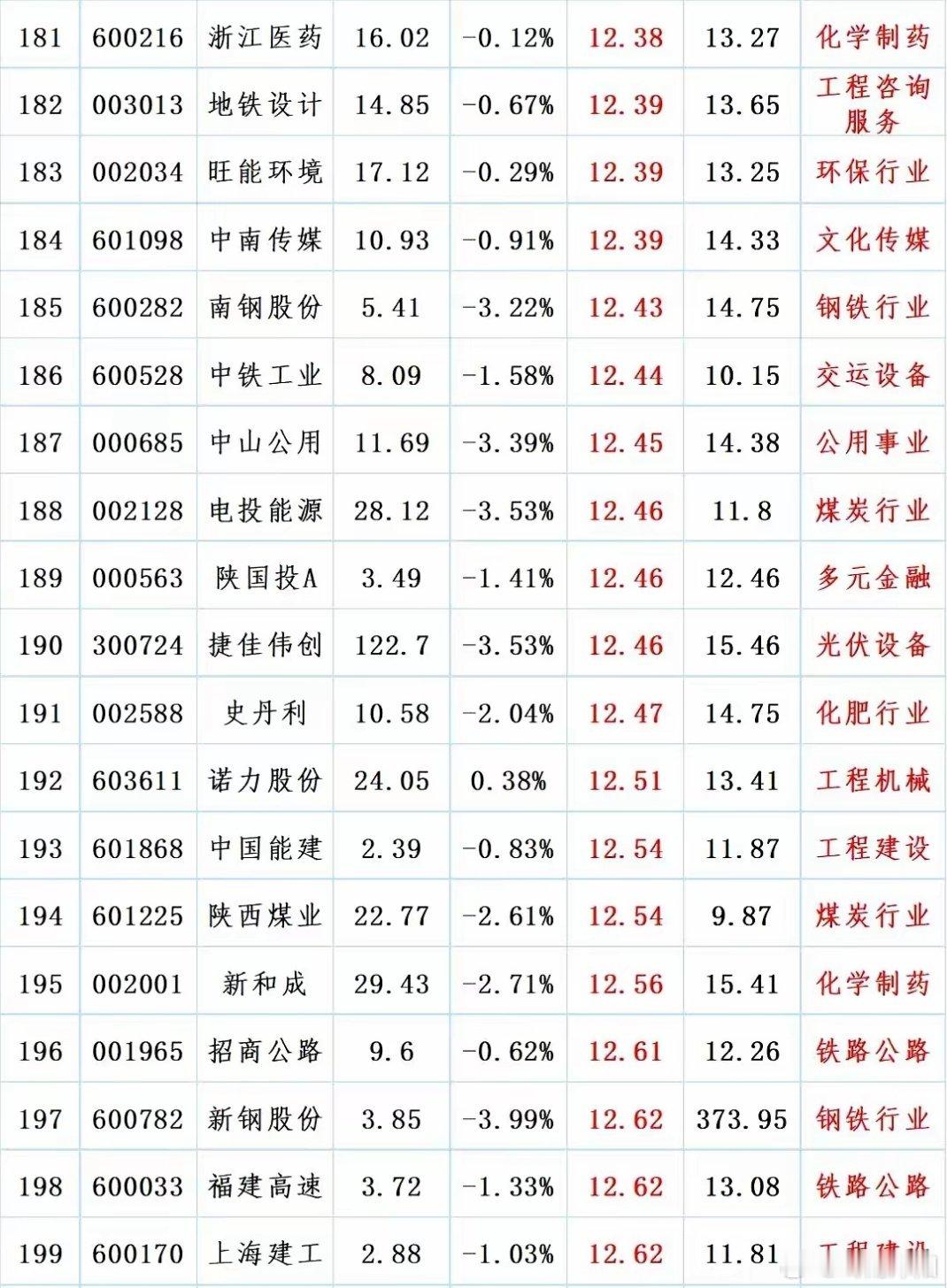 低估值、低股价、低市盈率:200家“三低”公司,何时迎来价值修复?九层之台,起于累土;合抱之木,生于毫末。A股市场中的高价股并非生来高企,不少大牛股都是从两三元、甚至一元附近逐步走出来的。如今股价116元的泸州老窖,早年也曾在两三块钱的区间长期蛰伏。本文梳理出200家具备低股价、低估值、低市盈率特征的上市公司,仅供参考,不构成投资建议。浙能电力作为浙江区域传统能源龙头,主营火力发电,近三年业绩保持连续增长:2023年净利润65亿元,2024年升至77.53亿元,2025年前三季度已实现净利润62.30亿元,盈利韧性突出。公司当前股价不足5元,2025年曾从3元一度拉升至7.85元,目前回落至年线附近4.96元位置,短线需警惕继续回调风险。星湖科技主营化学制品与食品饲料添加剂,过去五年年度净利润稳步增长。该股在2025年8月触及8.55元阶段高点后,历经四波调整,年底下探至6.58元低点;反弹至7.57元后再度进入连续回落整理阶段,短期需留意进一步调整压力。安徽建工常年保持8亿—13亿元的年度净利润水平,股价自2022年创下8.66元历史高点后持续回调,目前在3元附近长期横盘震荡。2025年大盘走强期间,该股逆势下跌1.27%;2026年2月公司新中标三大项目,合计金额达71.4亿元,而当前总市值与流通市值仅80.16亿元,基本面与市值存在明显错配。