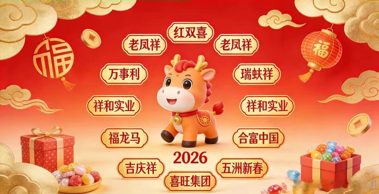 喜庆名字·知名企业1. 红双喜:传统吉庆符号,乒乓器材老字号2. 老凤祥:百年珠宝,吉祥华贵,首饰首选3. 万事利:寓意万事顺利,丝绸礼赠龙头4. 瑞蚨祥:瑞祥双吉,财源广进,老字号绸缎5. 祥和实业:寓意和谐平安,高铁扣件龙头6. 合富中国:合作共赢、富足兴旺,医疗流通企业7. 福龙马:福运+龙马精神,环卫装备龙头8. 喜旺集团:喜气兴旺,年货肉制品热门9. 五洲新春:万象更新,精密轴承制造商祝新春快乐,万事如意,一马当先,马到成功!