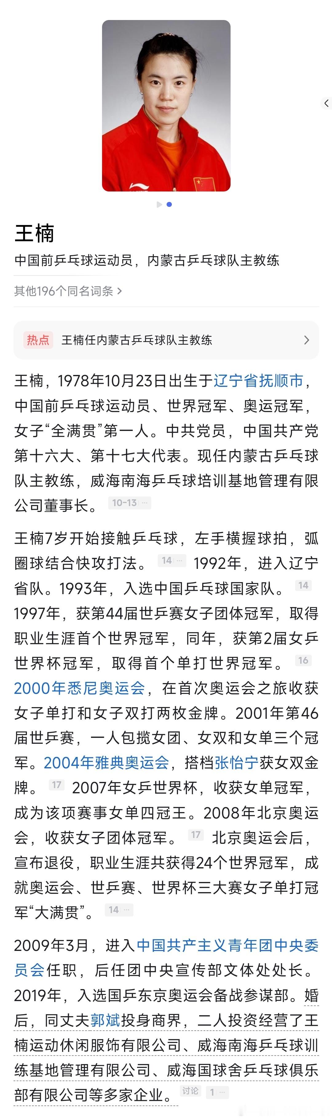 王楠出任内蒙古乒乓球队主教练。
