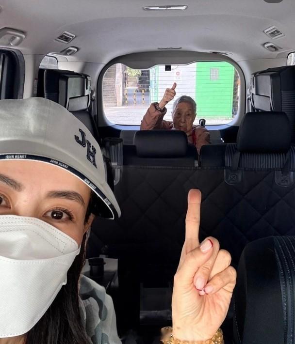 宣萱趁新年,接視為親人嘅工人姐姐英姐從老人院接出街做節。