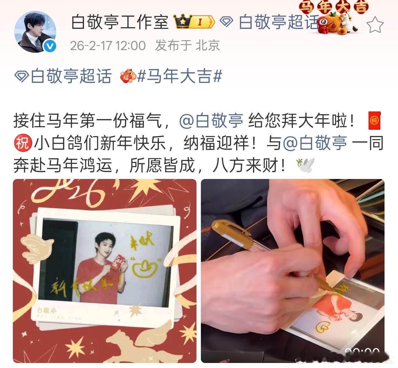 2月16日,杨紫带piupiu来给大家拜年啦穿红衣分享在《玉兰花开君再来》剧组