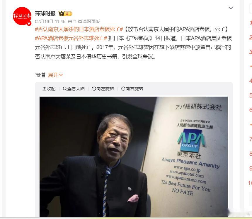 否认南京大屠杀的日本酒店老板死了 日本人以这种方式向中国人民拜年,贺岁。很好。但无需说”谢谢“这本就是它们应做的份内事。遗憾的是,这样的日本人以这样的方式祝中国人民过年好,太少了。
