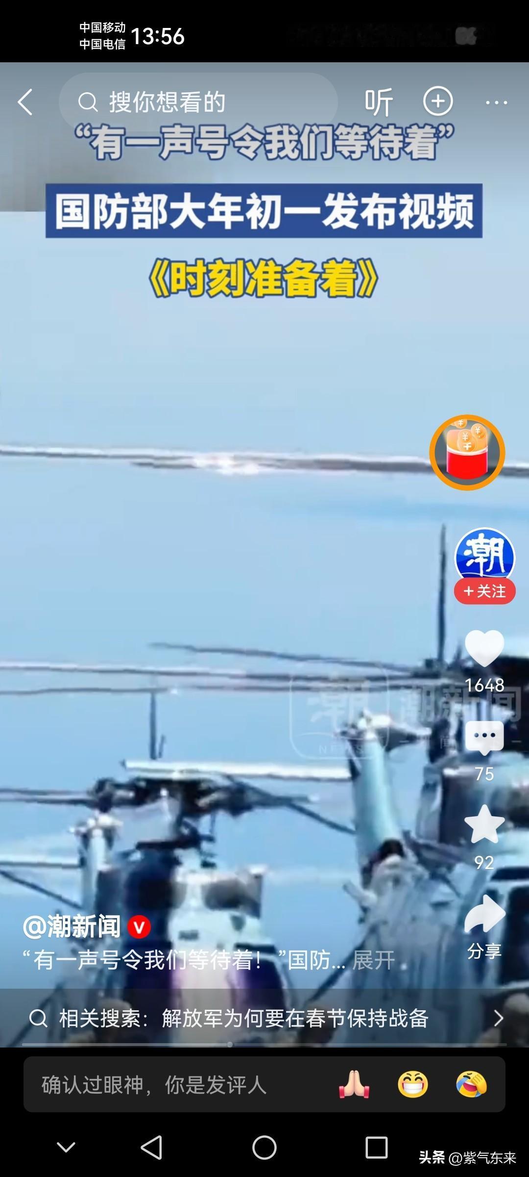 太振奋人心了! 看来我们人民解放军,时刻准备把五星红旗插在祖国的宝岛上! 中国人民解放军时刻为解放台湾准备着 中国国防部这是在“磨刀霍霍” 大年初一,国防部发了一段耐人寻味的视频,标题为《时刻准备着》 国防部称:我们时刻准备着,只要中央军委一声令下。 视频配图航母无人机战斗机,三位一体全方位,就问你“台独”怕不怕! 和平时期我人民子弟兵都等着建功立业,报效祖国,完成祖国大一统! 台湾回家吧!解放台湾地区 封锁台湾
