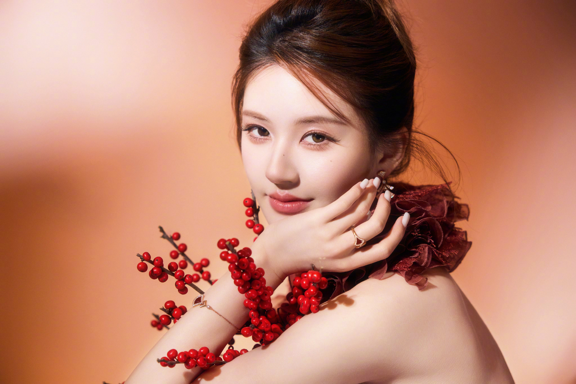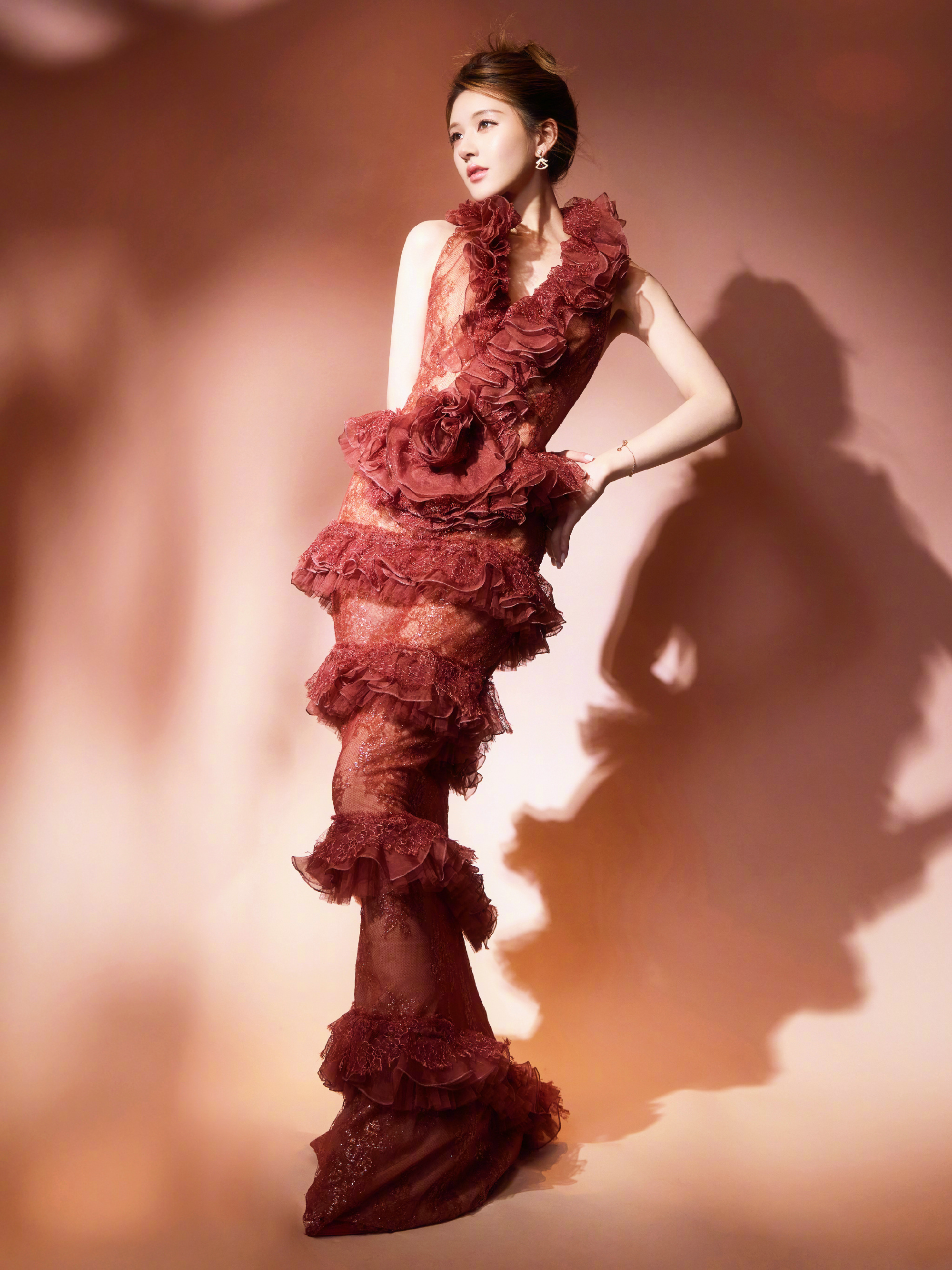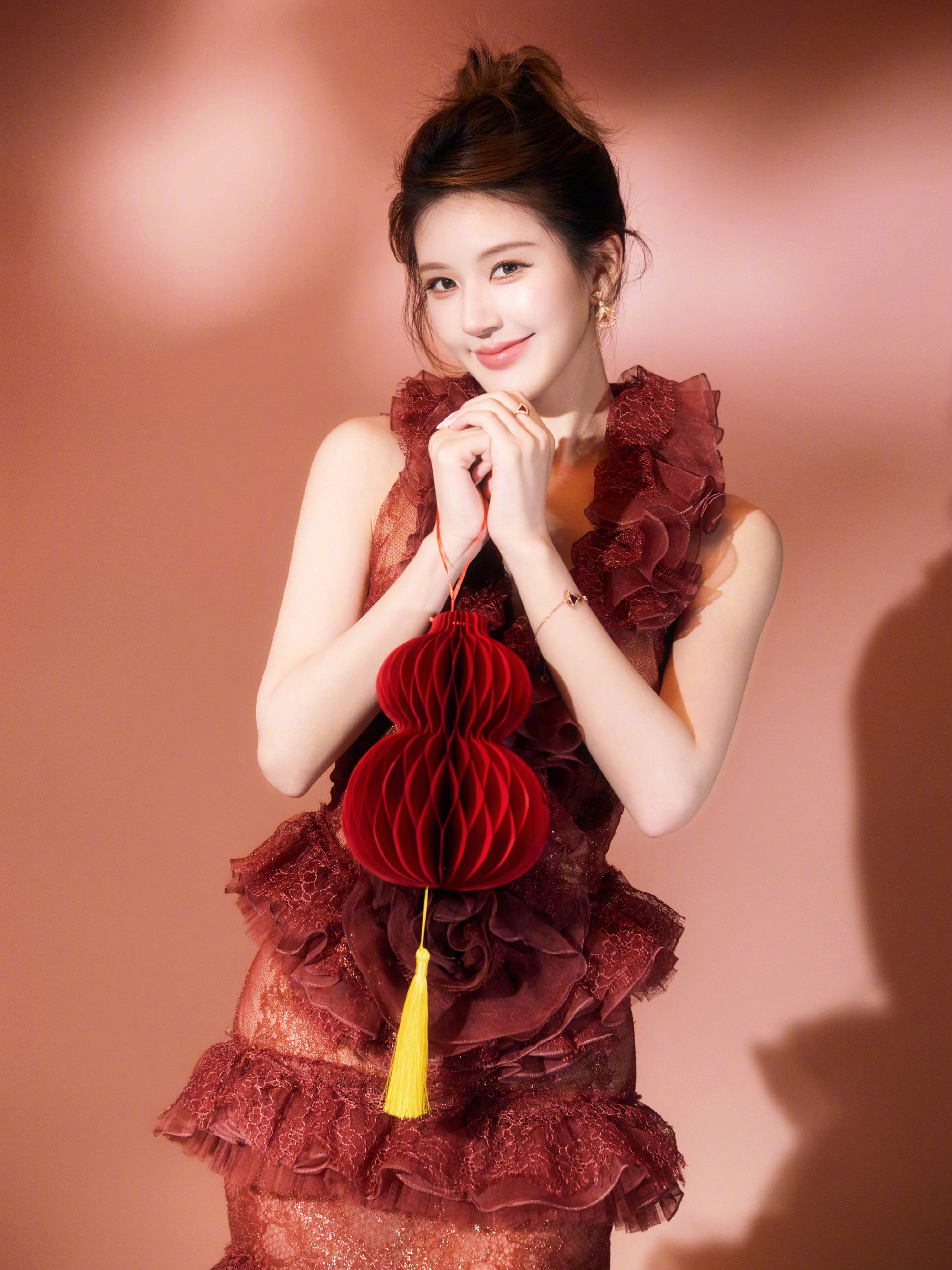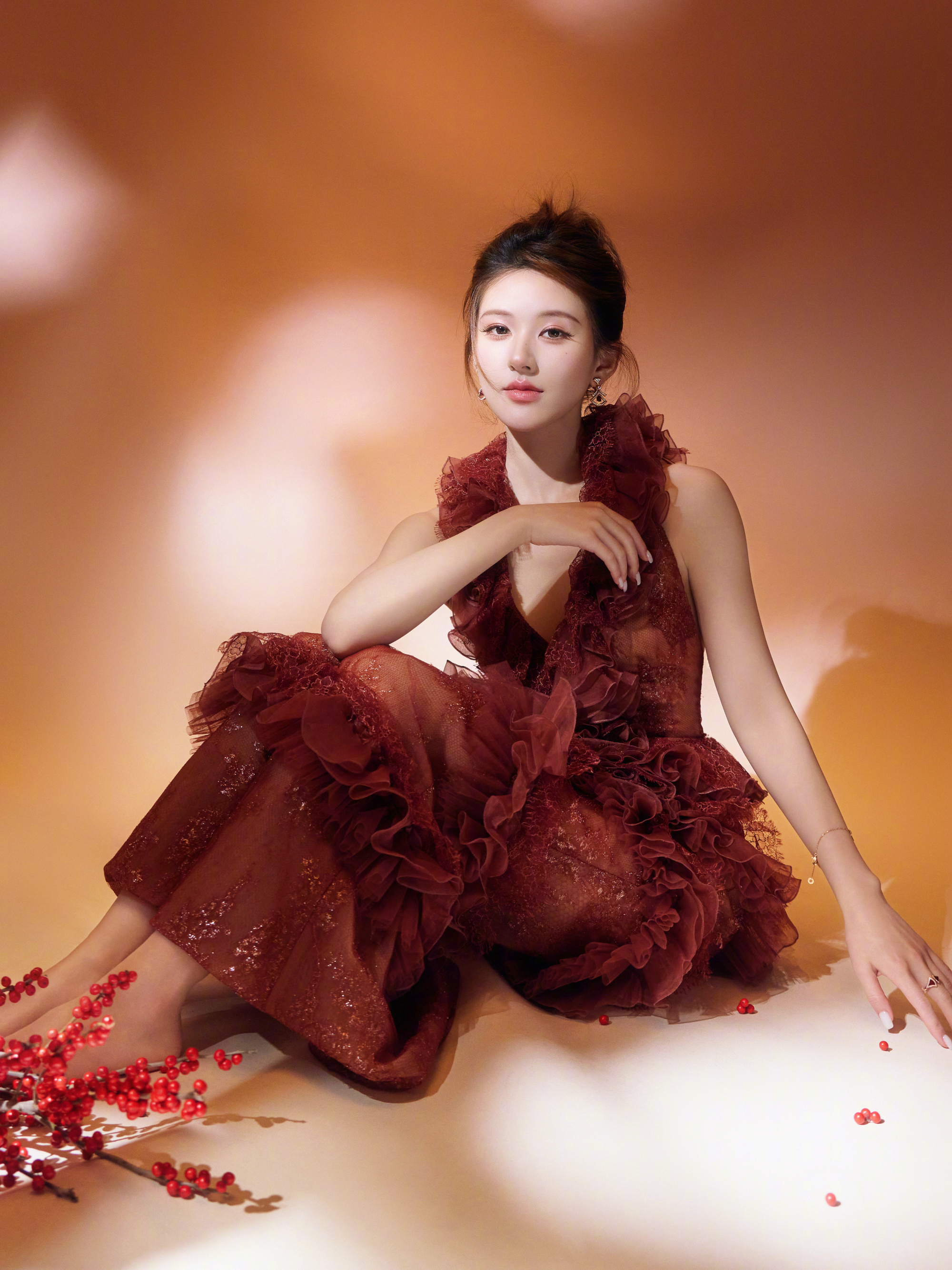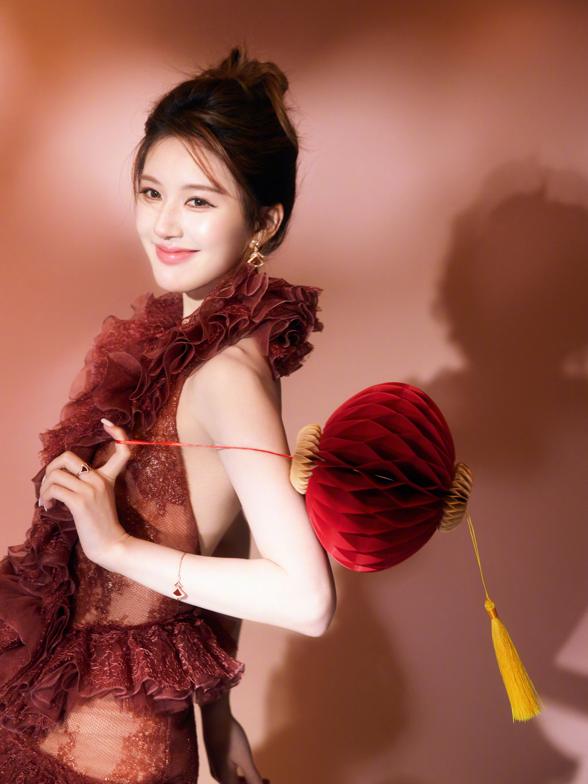 赵露思 新春造型大片,身穿Geyanna Youness 25春夏定制系列,佩戴BVLGARI 珠宝出镜,层叠蕾丝礼裙勾勒身段,明媚优雅气质。🌺🏮