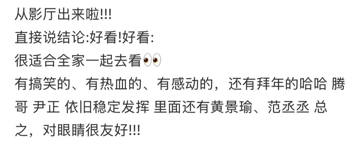 转场还是一如既往地利落,节奏不拖沓,全程都能看得进去。作为春节档的片子,够热闹也够燃,已经推荐给朋友了,适合一家人去影院放松一下。