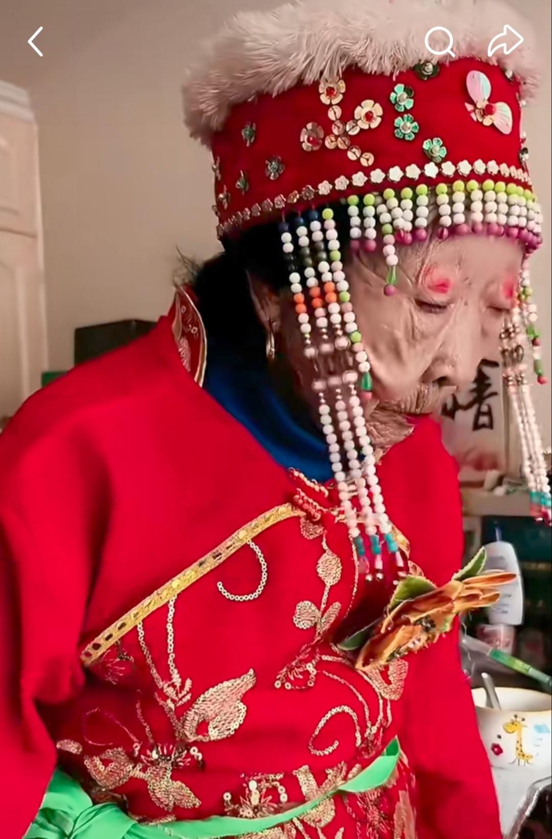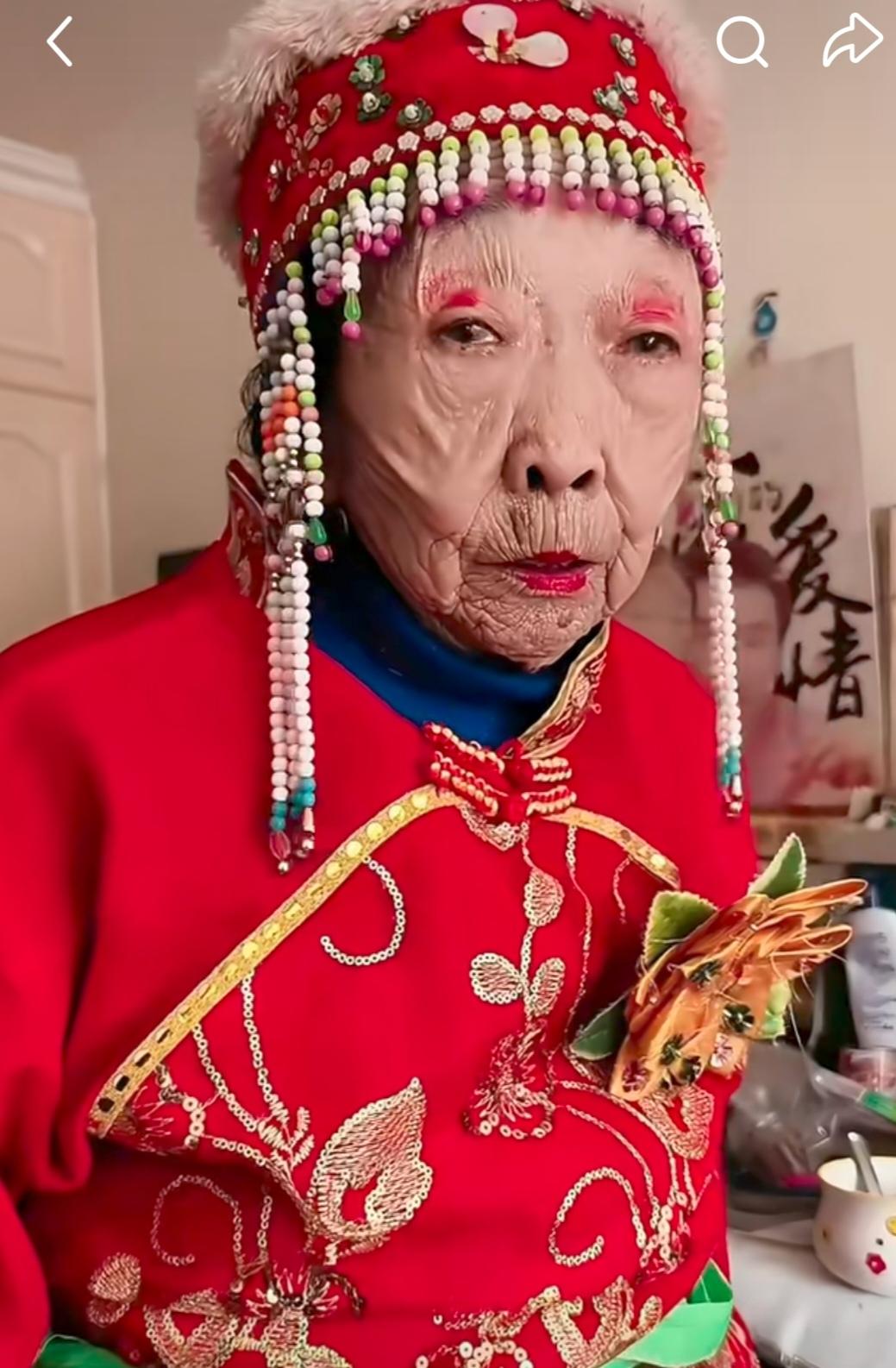很长时间没看到88岁马玉琴的视频了,这次刷到了!老人家马大姐打扮得喜喜庆庆,化着