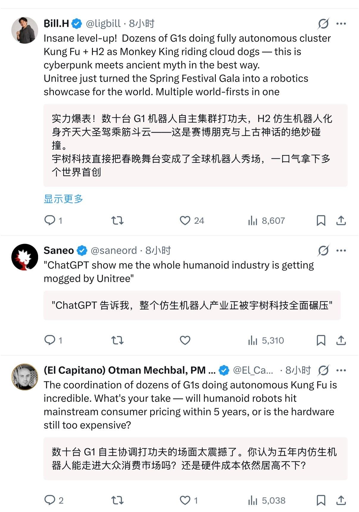 今天全世界都在讨论春晚上的中国机器人,很多外国网民惊叹,这是真实视频还是AI? 尽管今年春晚褒贬不一,很多网友认为春晚机器人含量太重,人味都快没了,但老外却在惊呼中国的科技! 别说老外了,对比2025年春晚上的机器人,连我们自己都傻了,没想到会这么丝滑,去年的机器人真不是这样的… 正如春晚总导演回应,是希望通过节目让观众看到中国机器人立体化的发展,如今全世界都看到了,为我们的祖国感到骄傲而自豪! 不过对于网友们说的也没错,机器人的篇幅占太多了,失去了该有的人间烟火气,矛盾就在于舞台科技含金量和观众的情感获得感未能完全同频,针对这情况该怎么解决呢? 之前不是有机器人运动会嘛,大家说明年会不会再弄个一个机器人春晚,让人归人,机器人归机器人…🤔️