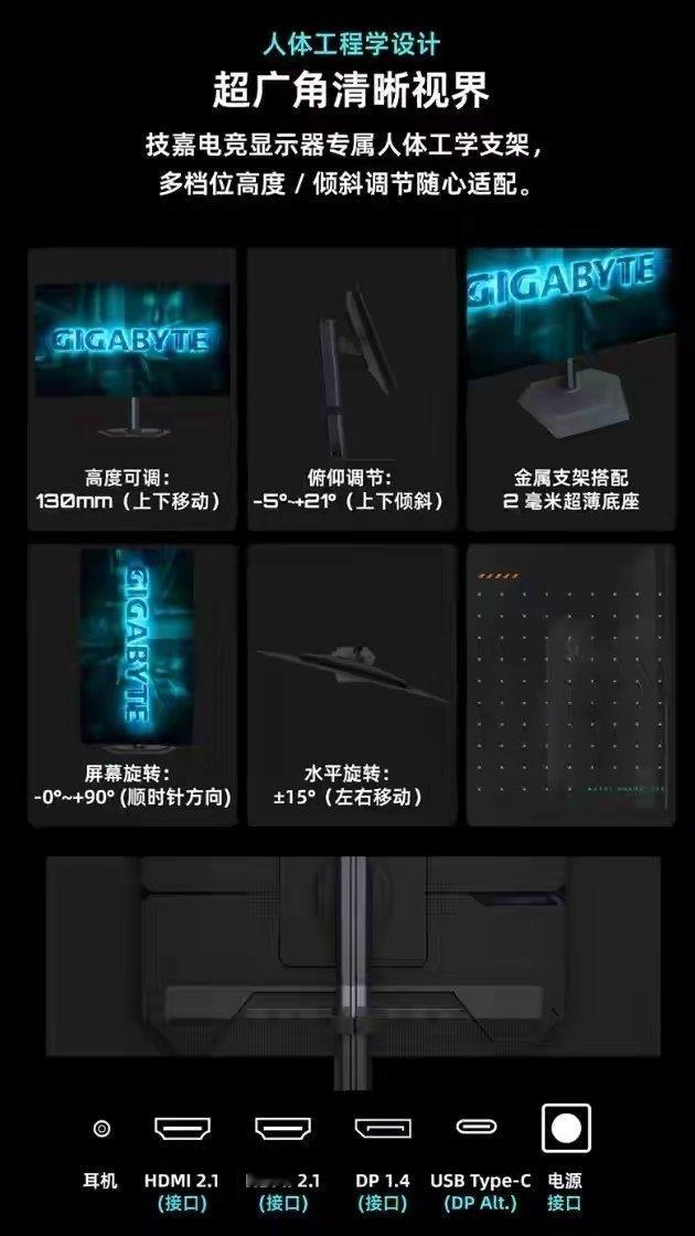 此外,这款显示器内置无频闪技术,支持 VRR(可变刷新率),减少频闪,内置 AI OLED 防烧屏功能,带有 3 年质保,配备两个 HDMI 2.1、一个 DP 1.4 以及一个 USB-C 接口,电源则是外置设计。显示器支架支持升降 / 倾斜 / 旋转,亦支持 VESA 壁挂。