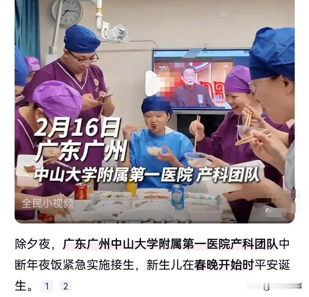 医生真的是一个了不起的职业,在人命关天的时候救死扶伤。 2月16日除夕夜,广东广州中山大学附属第一医院。 医生放下年夜饭冲去接生,这也是没办法的事情,毕竟这非常的紧急救人要紧。 服务业就是这样的,特别是做医生的。 我相信他们也是非常自豪的,毕竟能够迎接新生儿的到来。 向每一个服务行业工作者致敬。