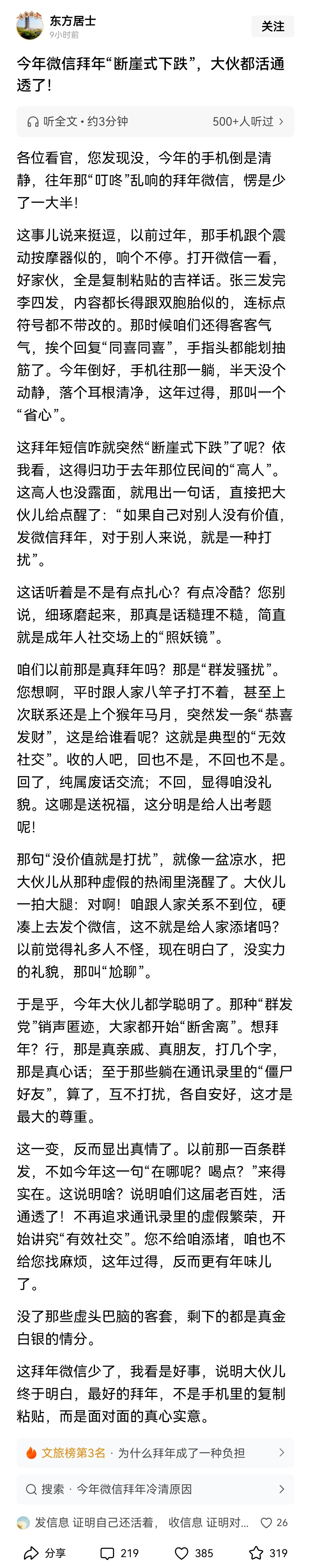不仅微信群里拜年的少了,发红包的似乎更少,我加的几十个微信群,只有一两个群有一两个零星的红包,不像以前,抢红包成为春节的热点与乐趣之一。 今年春节,你在群里抢了多少红包?