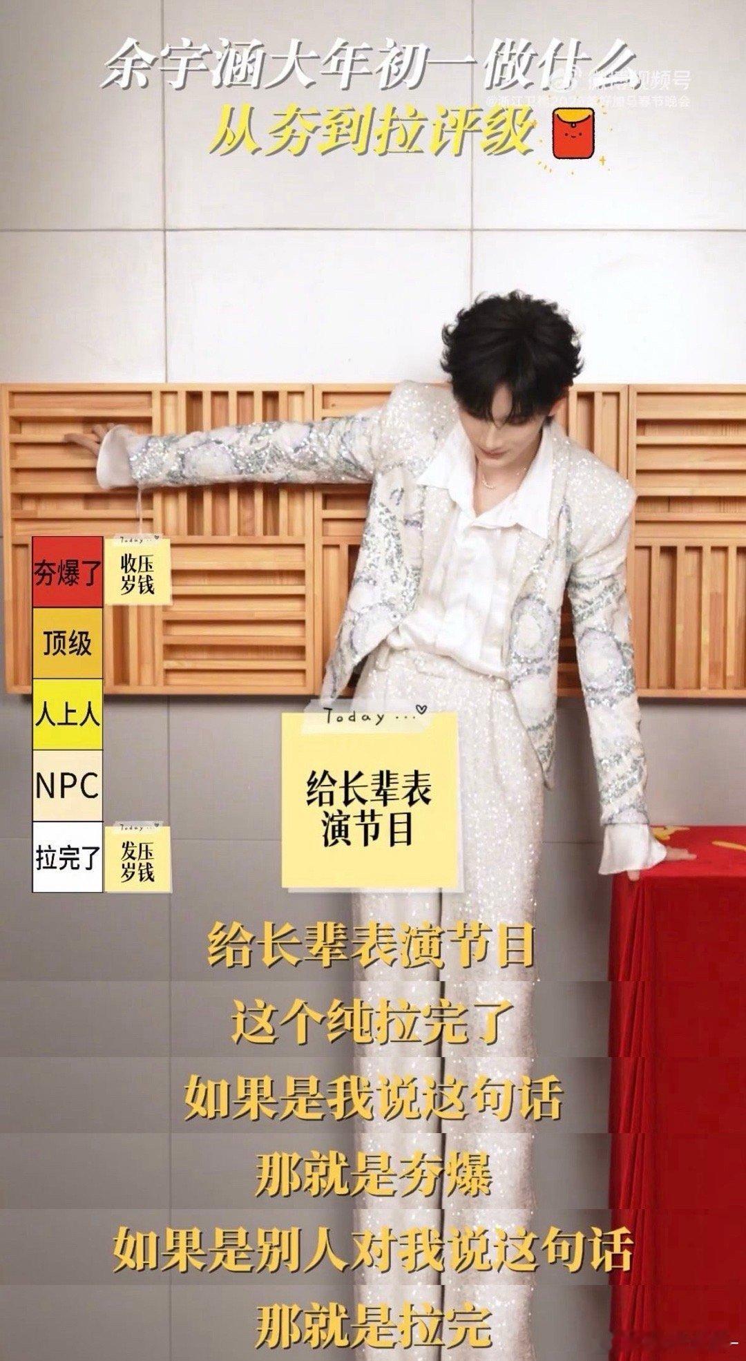 夯就一个字余宇涵说了很多次浙江卫视春晚 余宇涵的夯拉指南请收好!收压岁钱夯爆,发压岁钱拉垮,让小辈表演节目夯爆,看浙江卫视春晚夯爆,听八卦还是夯爆!今晚19:30,跟着余宇涵一起夯起来!