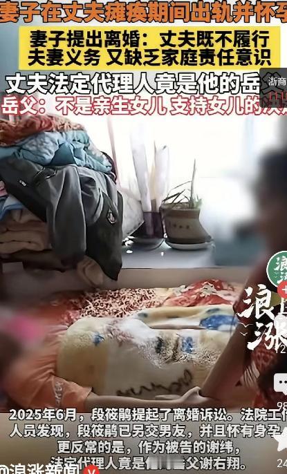 大难临头各自飞!江苏昆山,一30岁男子煤气中毒,导致瘫痪,妻子伺候他两年,嫌他不能尽丈夫义务,女子耐不住寂寞,找了男友,怀上了孩子,女子告到法院,非要和男子离婚,可男子无父,母亲智力有问题,岳父给他做了代理人,法院担心他们父女串通,想要抛弃男子,继父说出秘密,真相更加扑朔迷离。 谢某今年30岁,原本是昆山一家电子厂的技术工。两年前的一天夜里,一场煤气中毒,彻底改写了他的人生。 那天,出租屋门窗紧闭,劣质热水器持续漏气。等邻居闻到异味报警时,谢某已经昏迷不醒。 送医后虽然捡回一条命,却因缺氧时间过长,造成中枢神经严重损伤——高位瘫痪,生活不能自理。 医生在病危通知书上写得很清楚: “意识清醒,但四肢功能严重受损,后期恢复可能性极低。” 谢某醒来后,第一句话不是问自己,而是问妻子段某。 段某那年28岁,刚结婚没多久。 “我不走,我伺候你。” 这是段某当初对谢某说的话。 最初的两个月,她确实守得很紧。 每天早上五点起床,给谢某擦身、翻身、拍背,喂水、喂药,稍有不慎就会呛咳。她学会了给他插导尿管、处理褥疮,手上常年带着消毒水的味道。 可真正的考验,是后面的日子。 谢某无法翻身,夜里每两小时就要调整一次姿势。 他脾气也逐渐变得暴躁,情绪失控时会摔东西、骂人。 段某既是妻子,又成了全天候护工。 两年时间,她几乎没睡过一个整觉。 为了照顾丈夫,她辞掉了工作,家里经济来源只剩下微薄的残疾补助和亲戚接济。 朋友圈里,别人晒旅游、晒孩子,她却每天发的都是“今天换药”“今天没睡好”。 转折出现在第二年。 段某回娘家时,在厨房里一边切菜一边哭。她对父亲说: “他连话都懒得跟我说了,我不是老婆,是工具。” “我才30岁,一辈子就这样了吗?” “他连最基本的丈夫义务都做不了,我也是人。” 父亲听着,一直没说话。 不久后,段某开始频繁外出。 她认识了一个男子,对方比她年长几岁,工作稳定,会说安慰的话,会带她吃饭、看电影。 这是她两年来第一次,被当成一个“正常女人”。 事情很快越过了界限。 验孕棒出现两道杠那天,段某坐在卫生间里很久。 她没有犹豫太久,而是直接选择——起诉离婚。 在起诉状里,她写道: 与被告感情破裂 长期无法履行夫妻义务 已无共同生活可能 她要求解除婚姻关系。 谢某没有父亲,母亲因智力问题,无法正常表达,也不能出庭。 最终,岳父站了出来,成为谢某的诉讼代理人。 这让法庭产生了警惕。 法官在庭审中明确提出疑问:“你既是原告的父亲,又是被告的代理人,是否存在父女串通,借离婚抛弃被告的可能?” 整个法庭安静了几秒。 岳父站起来,说了一句话,让所有人愣住了——“段某,不是我的亲生女儿。” 岳父解释道: 段某是他早年收养的孩子,户口虽在一起,但并无血缘关系。 他愿意站出来做代理人,是因为: “我看着这孩子两年怎么熬过来的,也看着这个男人是怎么躺在床上的。” “可公道就是公道,我不会偏向任何一方。” 他说,谢某瘫痪不是他的错,段某出轨怀孕,也不该被粉饰成“情有可原”。 “离婚可以,但责任要分清。” “不能让一个瘫痪的人,连尊严都没了。” 法庭没有当庭宣判。 法官表示,需要综合考虑: 被告的身体状况 原告的过错情形 被告未来的生活保障 这不是一场简单的离婚官司,而是一道伦理难题。 一边,是年轻女人被困在无尽照护中的崩溃; 另一边,是失去行动能力、随时可能被世界遗忘的男人。 庭审结束时,谢某坐在轮椅上,被推离法庭。 段某站在原地,手下意识护着肚子。 岳父低着头,背影佝偻。 有旁听者小声说了一句: “大难临头,各自飞。” 可也有人反驳:“飞得走的人,至少还活着; 飞不走的,才是真的绝境。”