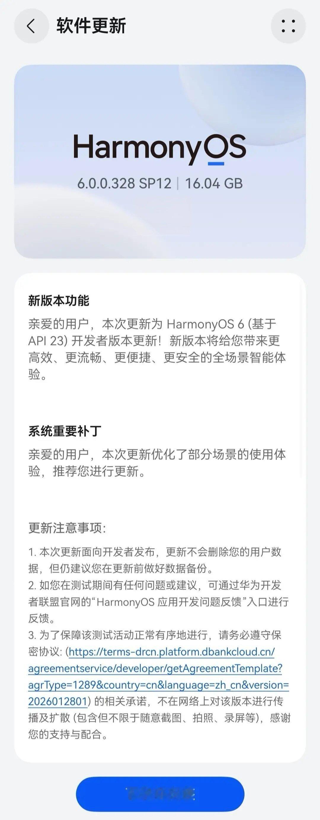 华为本月早些时候已陆续推送 HarmonyOS 6(基于 API 23)开发者 Beta 版本。据介绍,新版本将带来更高效、更流畅、更便捷、更安全的全场景智能体验。