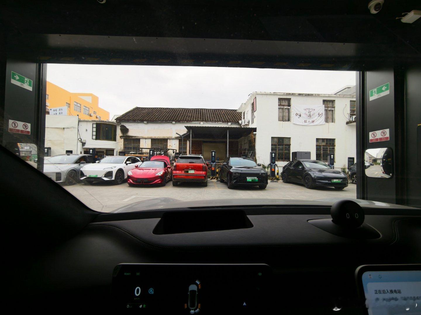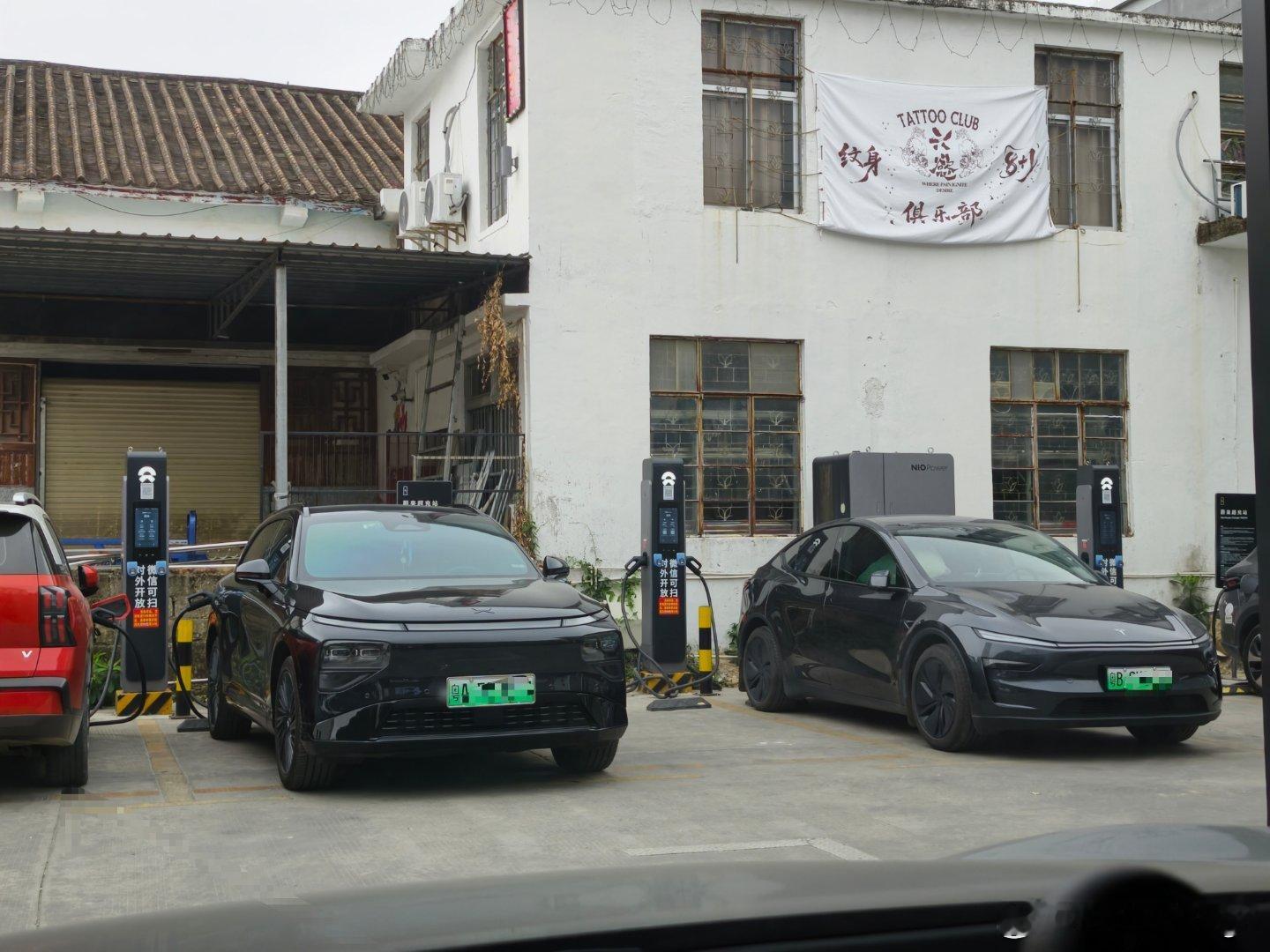 老家县城的蔚来换电站内的充电桩很繁忙。