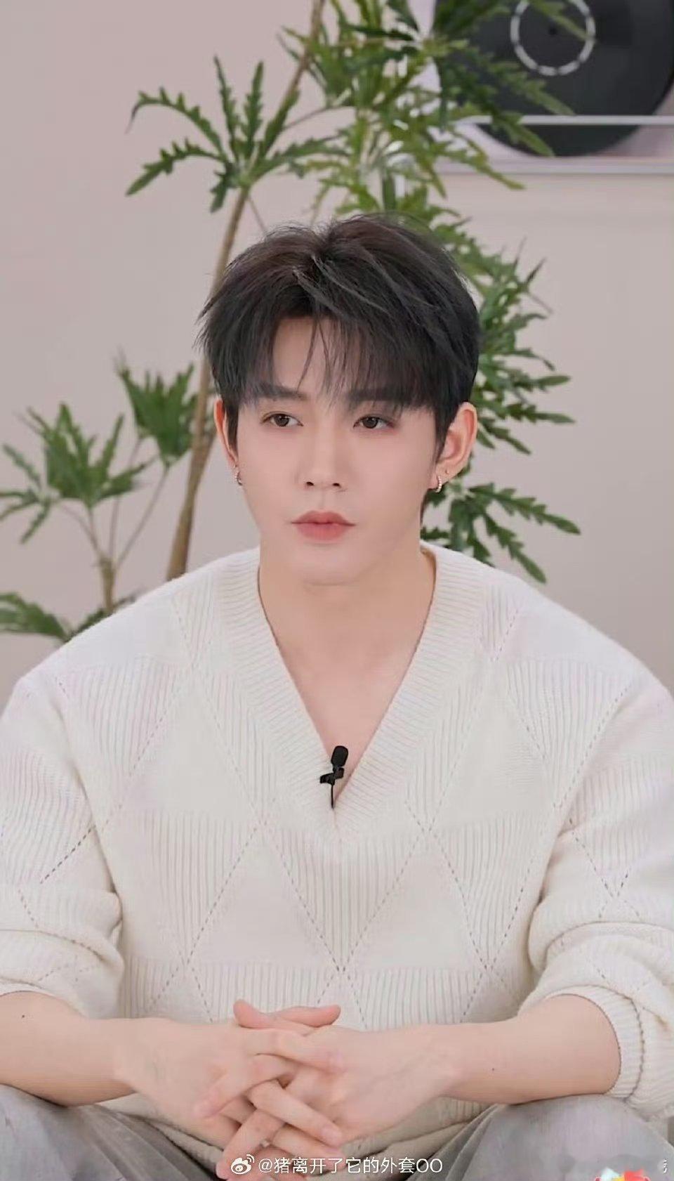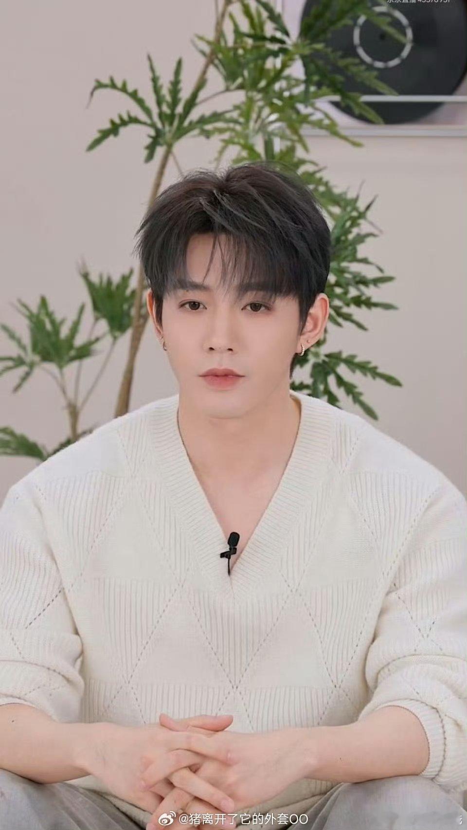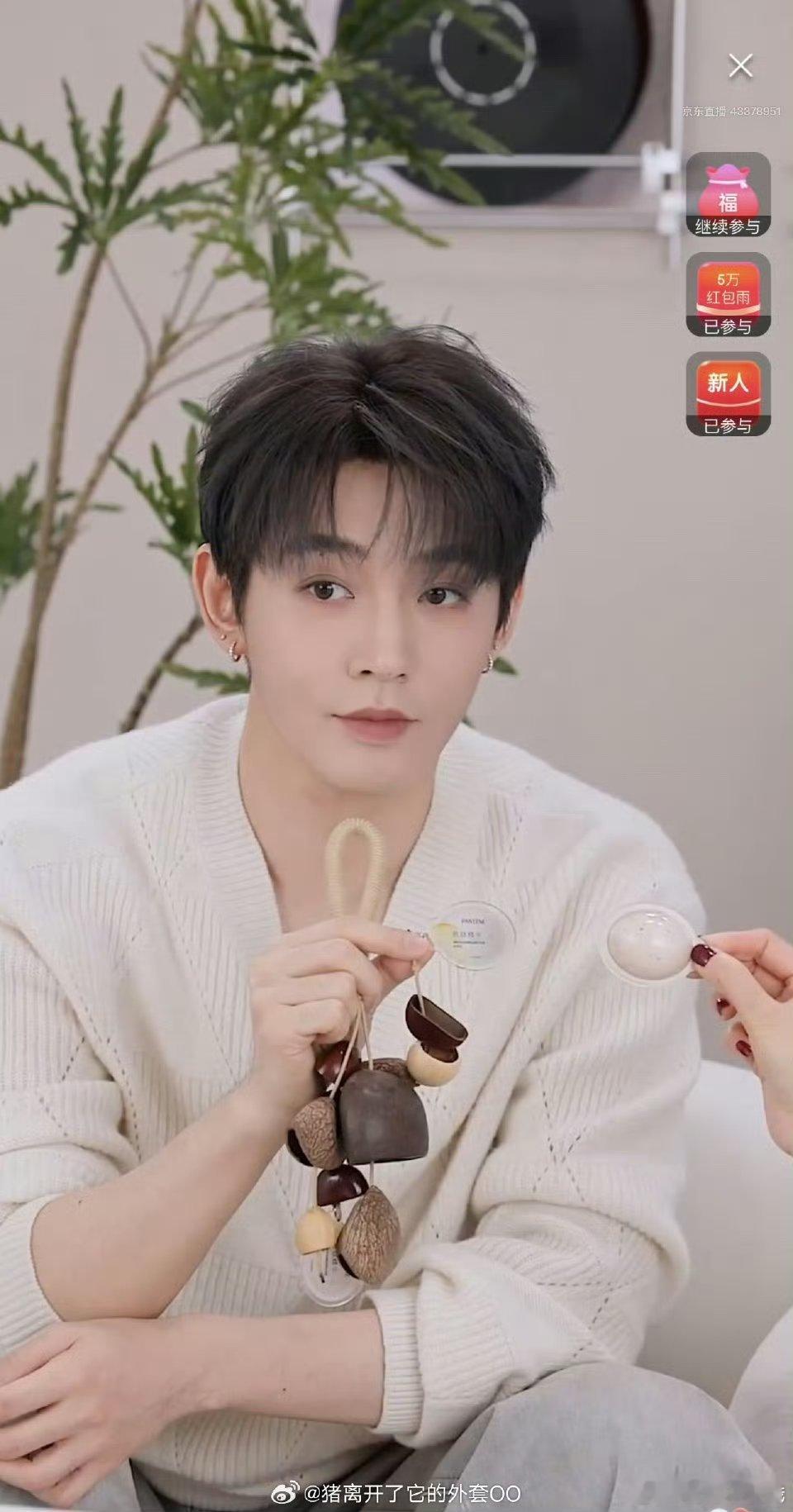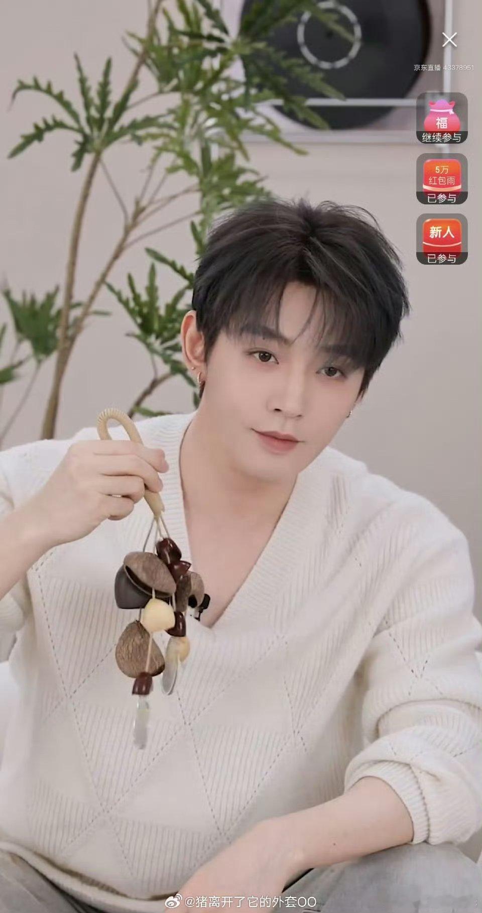 邓为品牌直播截图,米色毛衣难得的温柔又帅气!!
