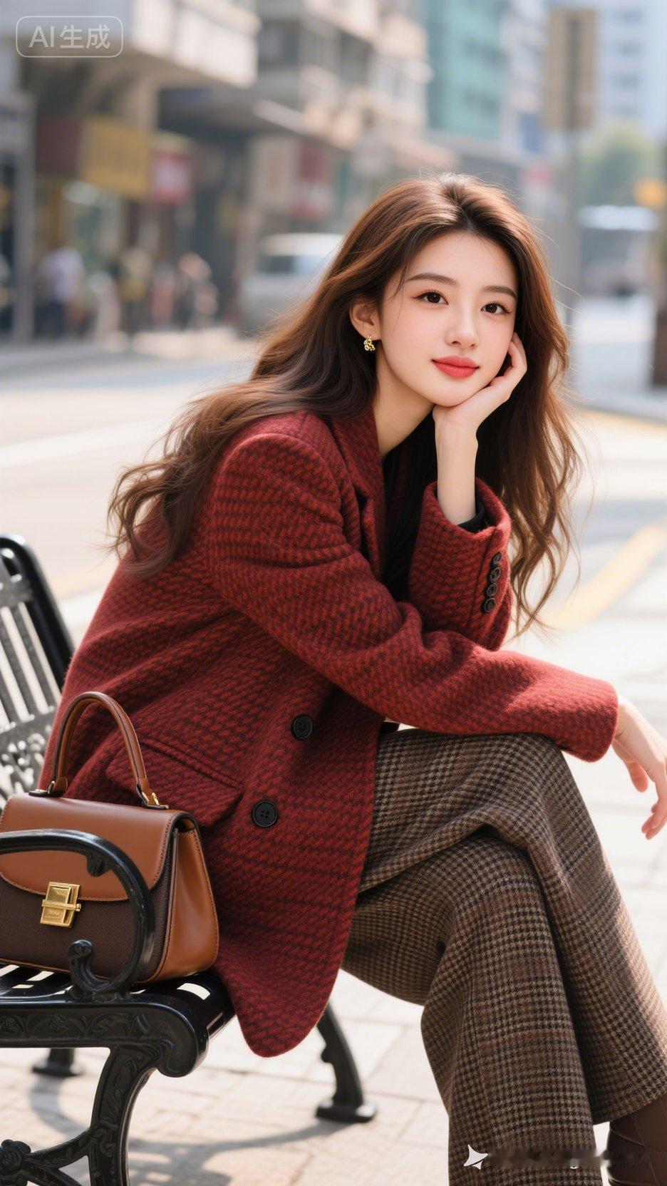 秋日街拍,红衣少女,复古街景,优雅气质,时尚穿搭