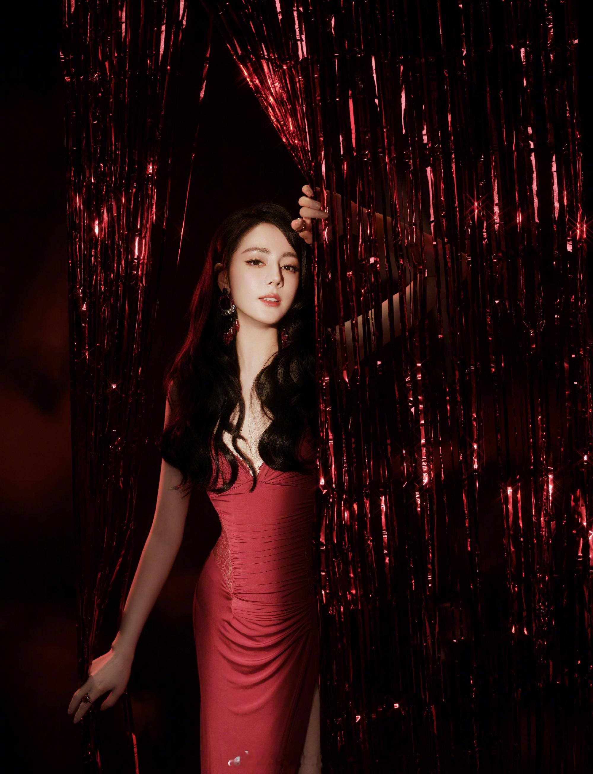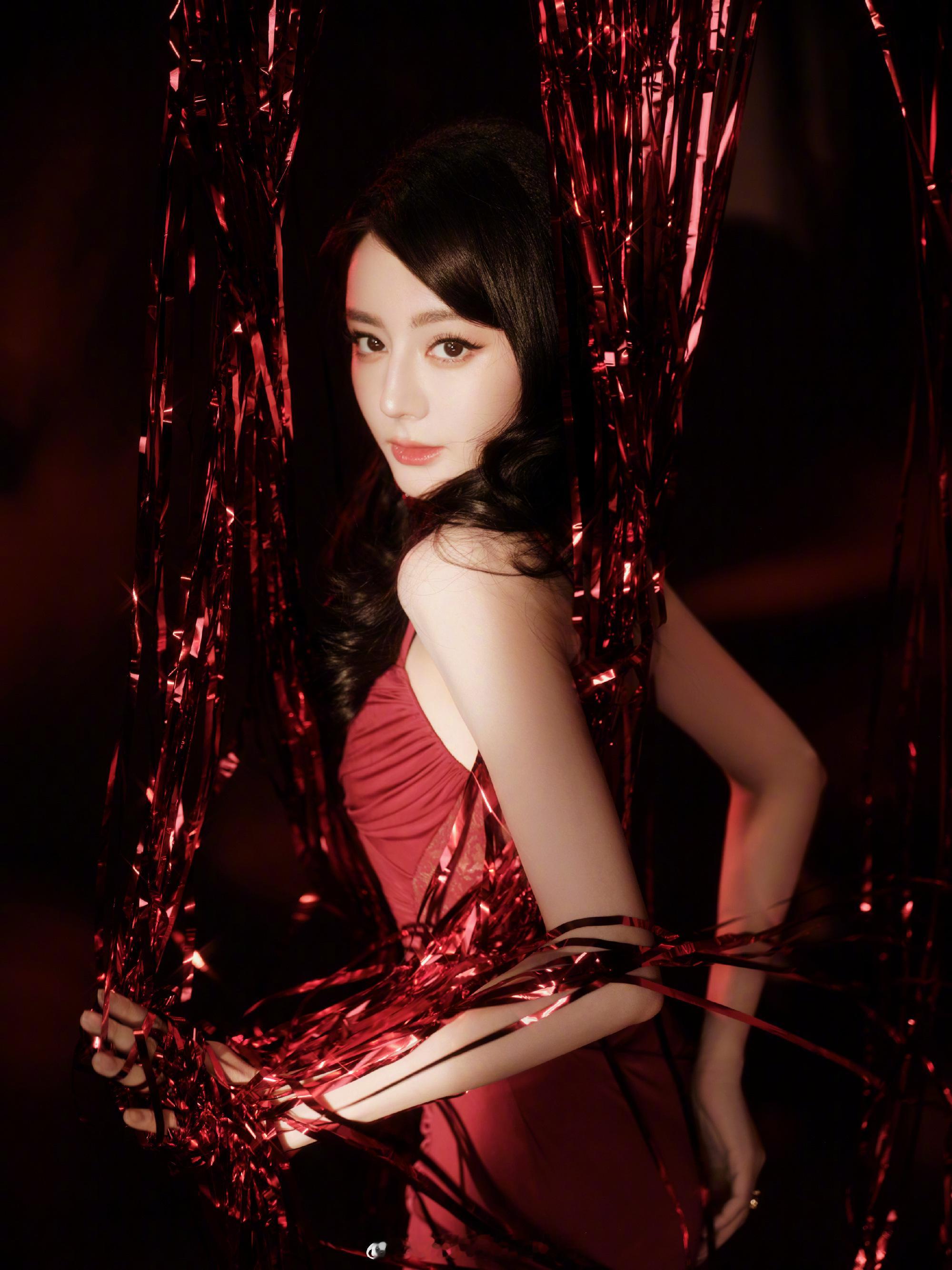 迪丽热巴红裙摇曳迪丽热巴红裙贺岁大片,红红火火