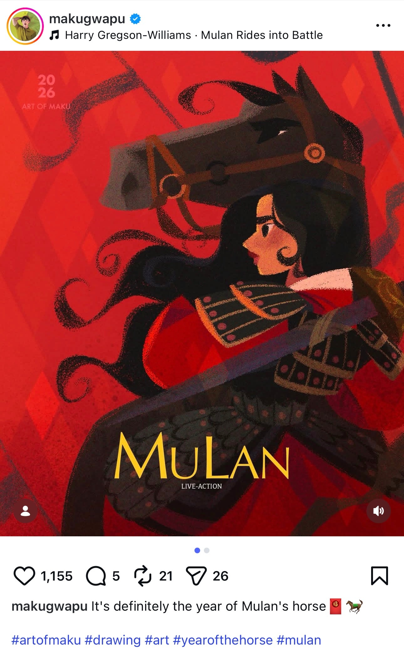 刘亦菲 lyf 花木兰 上次分享过的Ins 来自菲律宾的博主 网页链接 又出刘亦菲花木兰马年精彩二创啦,还配文说“It's definitely the year of Mulan's horse🧧🐎”(今年绝对是木兰的马年)刘亦菲对着狗狗夹飞了
