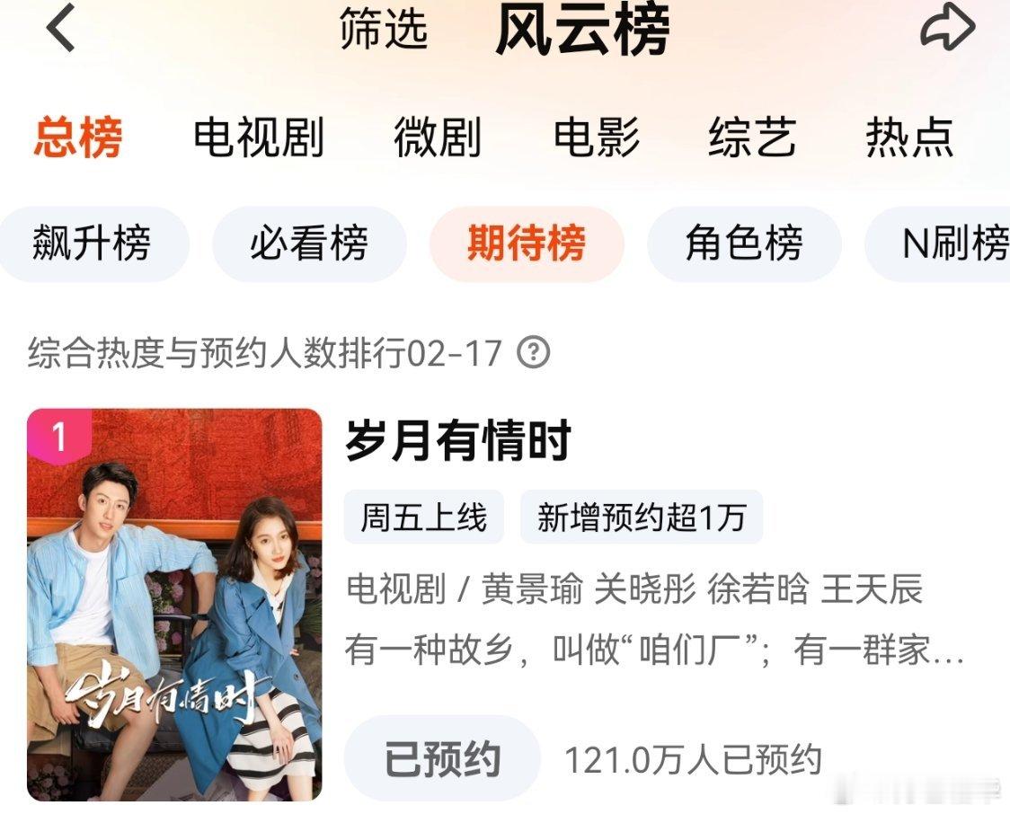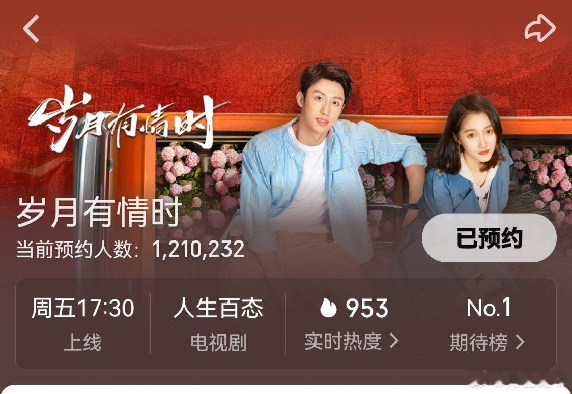 电视剧岁月有情时黄景瑜张小满 预约超120万。