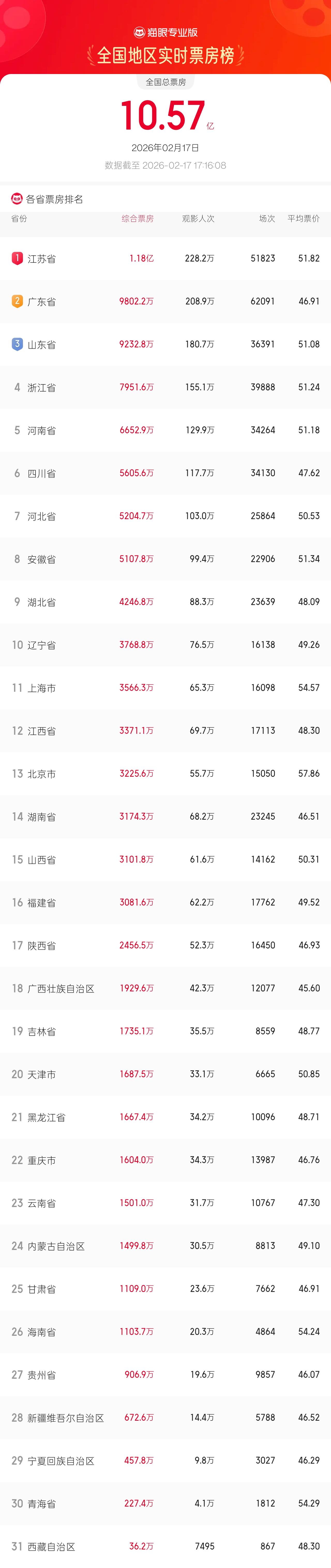 31个省市春节档第一天电影票房出炉:江苏力压广东、山东领先浙江、安徽第8名 截止目前,31个省市春节档第一天电影票房已经出炉了,江苏省和广东省分别实现1.18亿和9802.2万元,广东省目前电影票房低于江苏省196.98万元,至于今天能不能反超广东省,暂未可知。 山东和浙江省电影票房分别实现9232.8万元和7151.6万元,山东省因为人口的优势,使得山东省电影票房也是领先浙江2081.2万元。 安徽省是我国常住人口十强省份之一,春节档第一天电影票房实现5107.8万元,暂时落后河北96.9万元,估计安徽省第一天电影票房能够反超河北省,位居全国第7名。