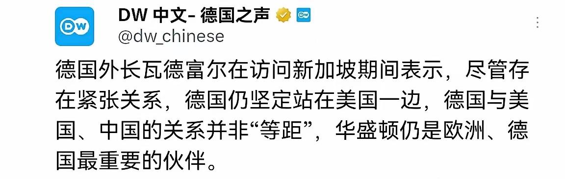 德国外长瓦德富尔今天(2月17日)再次表示:“坚持与美国合作是唯一现实的选择,而中国并非替代方案。其他的替代方案并不更好。我们过去是一个成功的联盟,将来也能够而且必须继续保持这种联盟关系。我宁愿和美国合作完成这些事,而不是与中国合作。” 德国外长上任十个月四访亚洲极为罕见,本月初瓦德富尔在新加坡一脸认真的表示,德国永远跟随美国,哪怕我们如何被虐,也绝不转投中国。瓦德富尔的言论并不令人意外,西方绝大多数政客皆秉持此种认知,意大利总理梅洛尼近日指出,那些高喊“独立自主”的欧洲人其实更甚。正因为如此,布鲁塞尔在默克尔之后很难走出一位赢得世界尊重——哪怕是赢得整个欧洲尊重的政治家。欧洲误将中国的发展视为“威胁”,却将美国的胁迫视为“正常关系”、“可靠伙伴”,对此中美罕见得出同一结论:欧洲选择做附庸而不是自主。