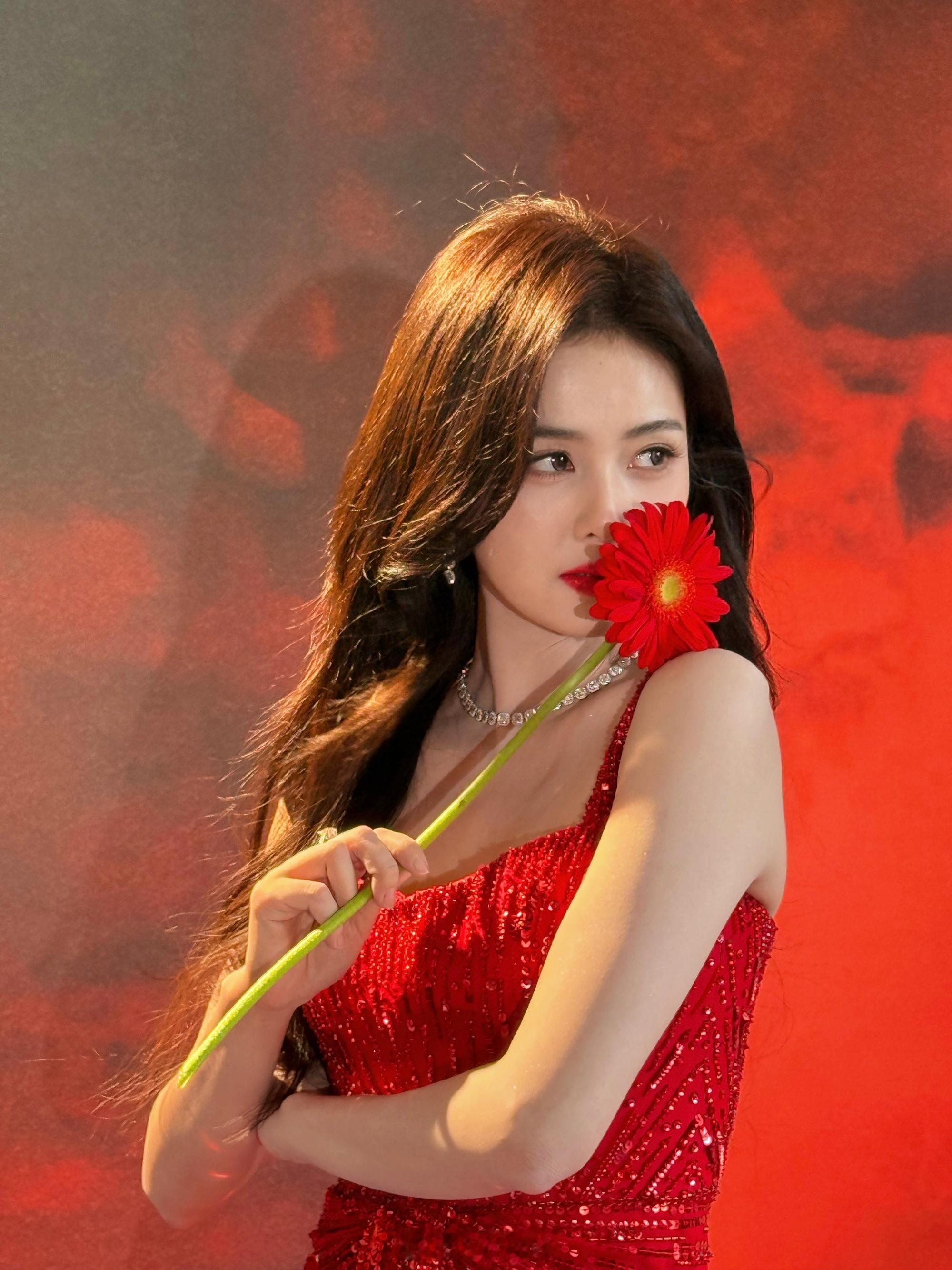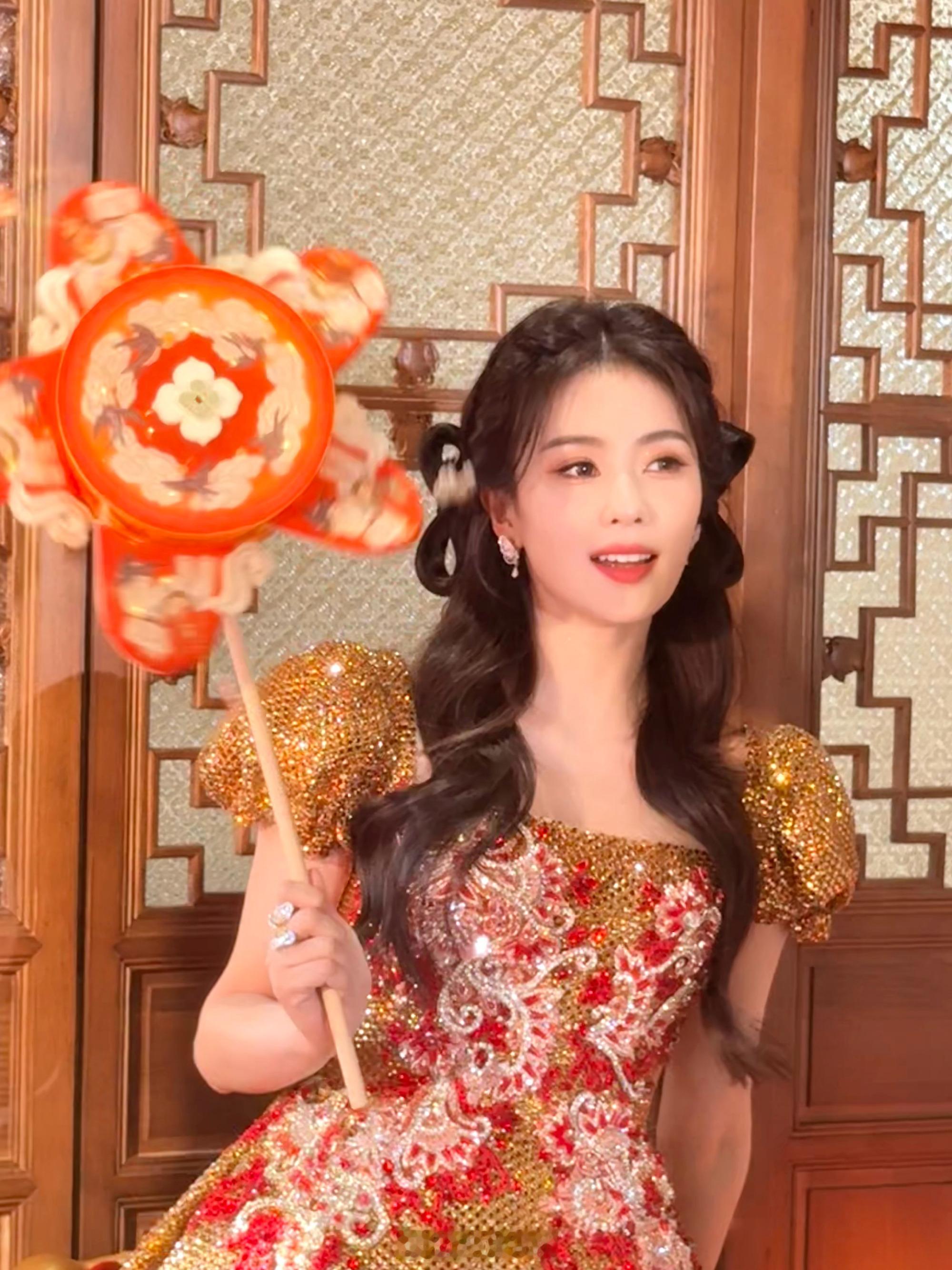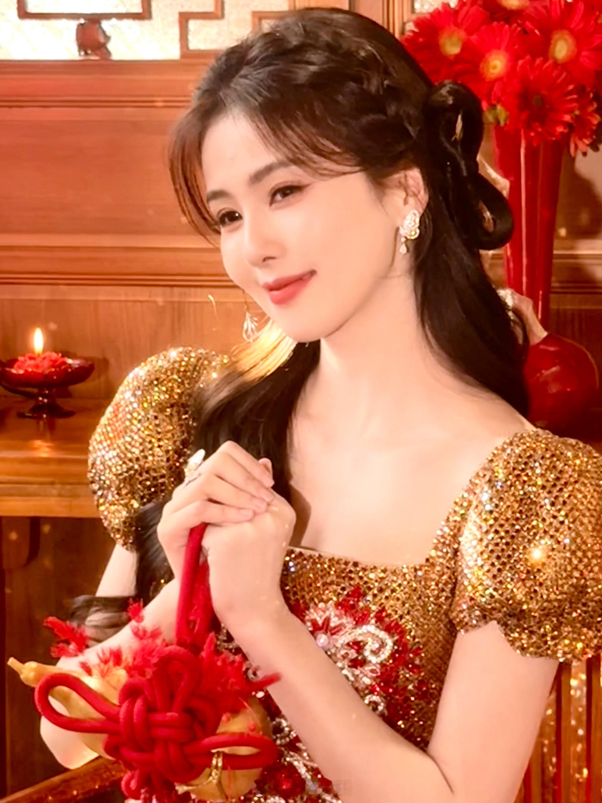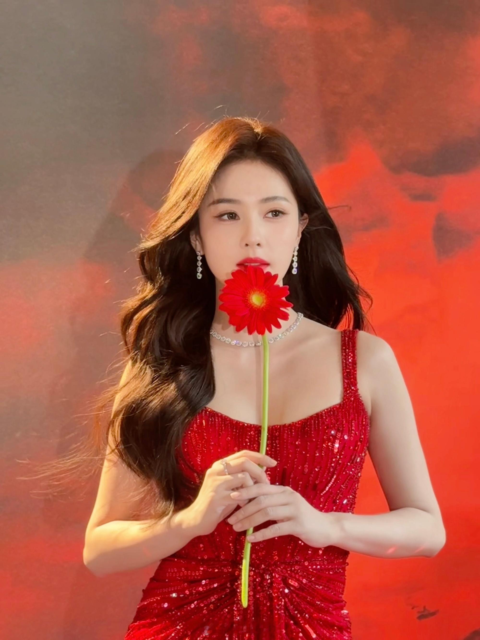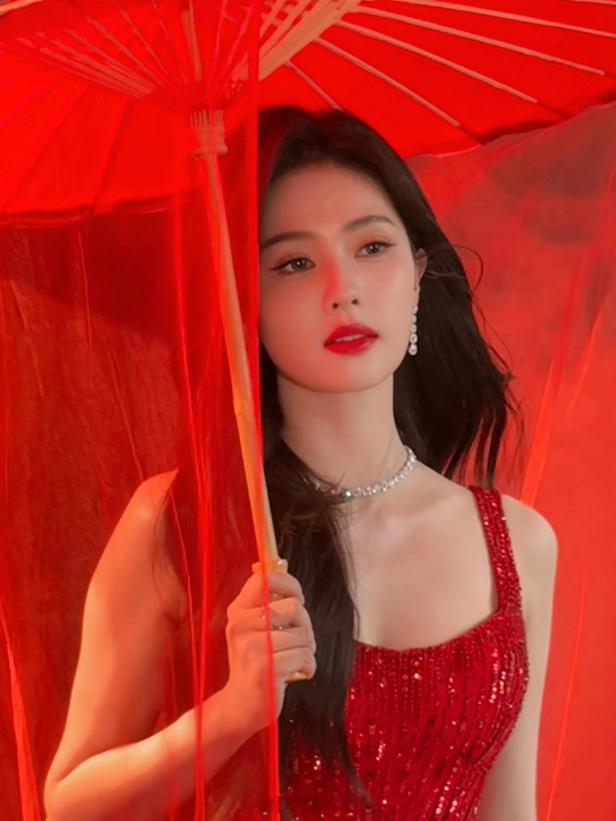 穿红裙披卷发魅力十足、新年照超美——白鹿。 每日明星美图分享
