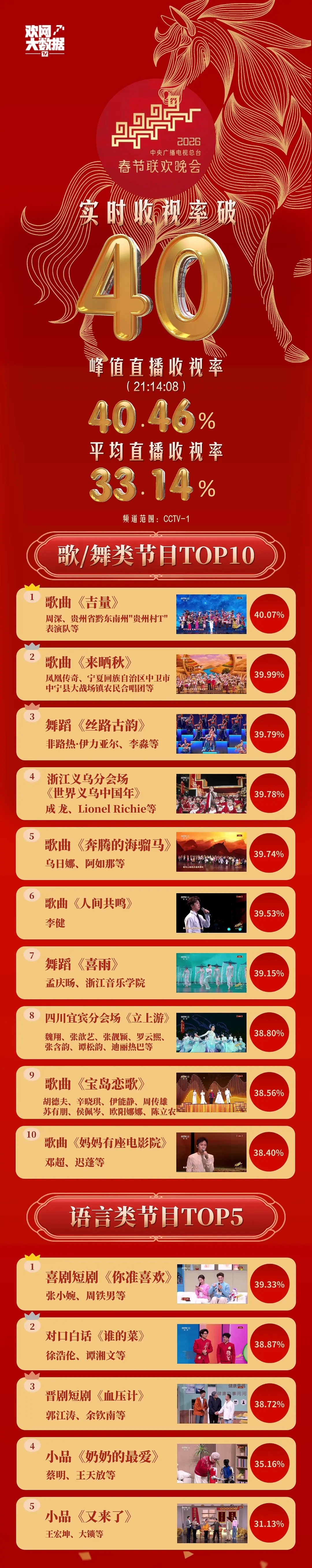 今年春晚实时收视率破40!!!大家都看了吗春晚收视率