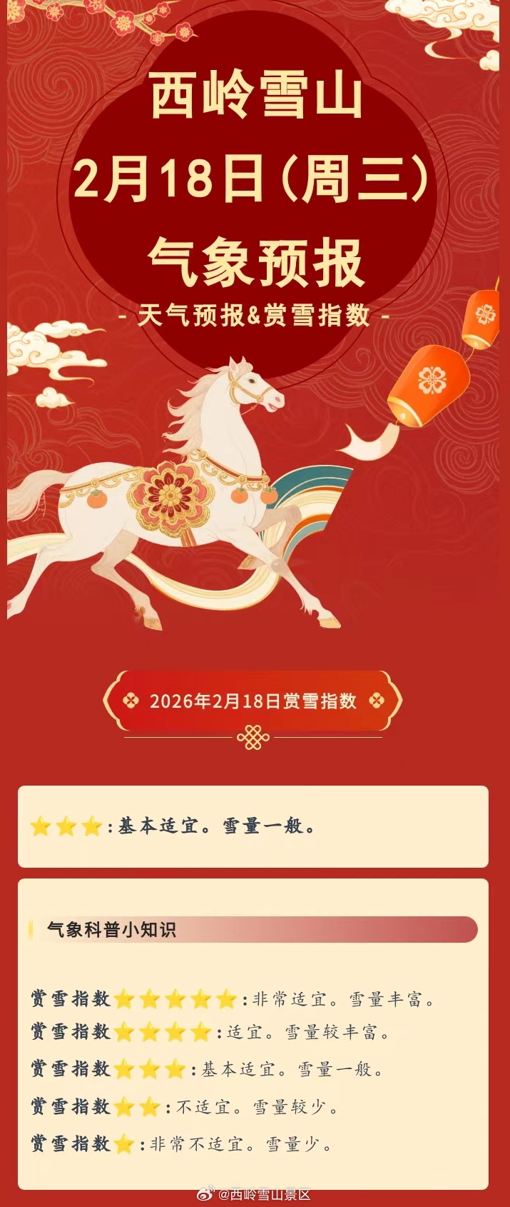 西岭雪山后山滑雪场景区2026年2月18日的客流预警公告