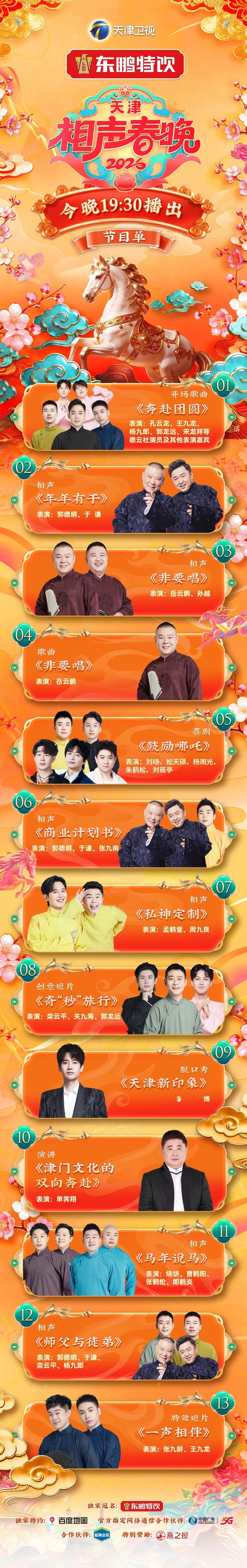 2026天津相声春晚节目单如果觉得昨天的春晚没意思,今天倒是可以看看天津卫视的相
