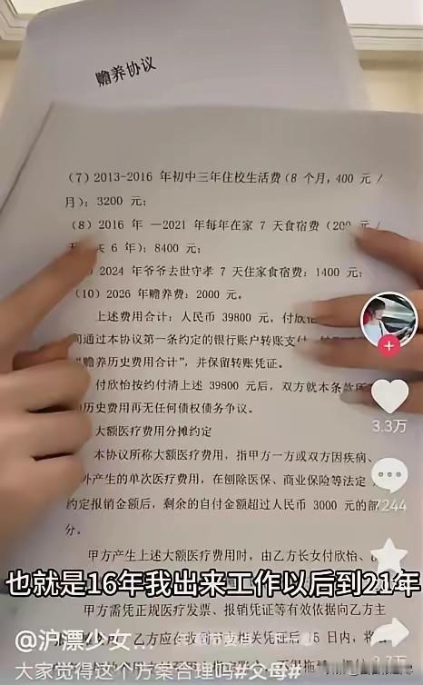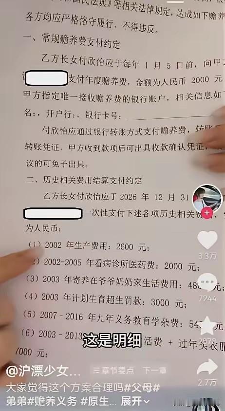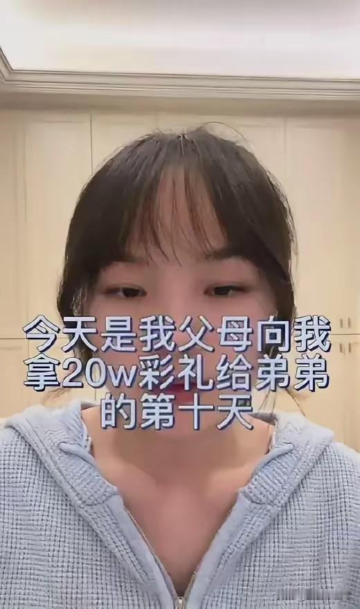 这姑娘所经历的,真是看的人心塞! 24岁的付欣怡,春节前收到法院传票,告她的不是别人,是亲生父母。理由荒唐到让人血压飙升!她不肯出20万给弟弟当彩礼,父母就一纸诉状,要她赔偿5倍“养育费”。不多不少,正好20万。 2026年春节前夕,24岁的付欣怡在务工城市收到了法院传票,将她告上法庭的是她的亲生父母,这场发生在普通家庭里的纠纷,因为诉求的荒唐程度引发了广泛关注。 付欣怡2002年出生,成长过程中多数时间由祖辈照料,年少时便外出务工,依靠自己的努力维持生活,多年来也会向家中给予经济支持,本以为能平淡过好自己的生活,却因弟弟的婚事被至亲推上了被告席。 父母向法院提出的核心诉求,是要求付欣怡支付20万元费用,这笔钱的用途十分明确,就是为弟弟筹备结婚所需的彩礼。 为了支撑这一诉求,父母精心整理出一份养育费用清单,将付欣怡从出生到成年的各类花销逐一罗列,其中包含2002年的生产费用2600元,幼年时期的医疗费用2000元,九年义务教育阶段的学杂费, 以及寄养期间的生活开支等,所有项目累加后总计39800元,父母将这个数字四舍五入计为4万元,随后直接乘以5倍,得出的20万元,与弟弟彩礼的缺口完全吻合。 这份清单的细致程度令人唏嘘,里面不仅有正常养育过程中产生的基础开销,还包含了本不应由付欣怡承担的3000元超生罚款,父母将这笔因家庭生育计划产生的费用,全部划归到付欣怡的名下,算作她应当偿还的养育成本。 整个计算过程没有任何合理的依据,既没有考虑通货膨胀的客观规律,也没有结合家庭实际的付出与付欣怡多年的回馈,仅仅是为了凑齐弟弟的彩礼钱,便随意设定倍数,把多年的亲情换算成了精准的金钱数字。 付欣怡面对这样的诉求满心无奈,她并非不愿顾及亲情,而是无法接受这种毫无底线的索取。她外出务工多年,每一笔收入都来之不易,生活中处处需要开销,根本无力承担这笔凭空多出的巨额费用。 父母没有考虑她的生活处境,也无视她过往对家庭的付出,只执着于让她为弟弟的婚事买单,一旦遭到拒绝,便用法律诉讼的方式施压,把血缘亲情变成了逼迫女儿妥协的工具。 整件事没有复杂的转折,却处处透着让人难以接受的冰冷,父母将法定的抚养义务,扭曲成可以溢价追偿的投资,把女儿的人生当成儿子婚事的垫脚石, 用一份荒唐的账单,撕碎了原本该温暖的亲情。此事在网络上传播后,让不少人感受到原生家庭中不合理索取带来的伤害,也让大家看到亲情被金钱裹挟后,最真实也最残酷的模样。 对此,你们有什么看法,欢迎评论留言~