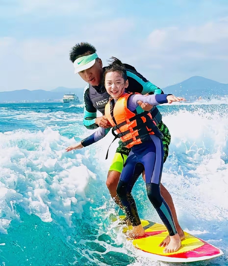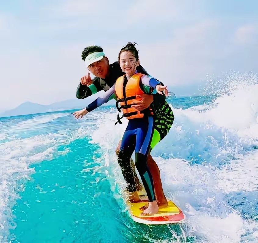 小酒窝在海上冲浪,好可爱明媚的小姑娘!别看她小小年纪,其实格局很大,也很通透,不怨恨亲爸,接纳继父,大人有大人自己的人生课题,她不掺和,只做好自己的事,她比很多成年人都有智慧,这孩子性格也活泼可爱,讨人喜欢,爱她的人很多,父母,姥姥姥爷,现在还有张维伊,还有很多亲朋好友,这孩子不缺爱!