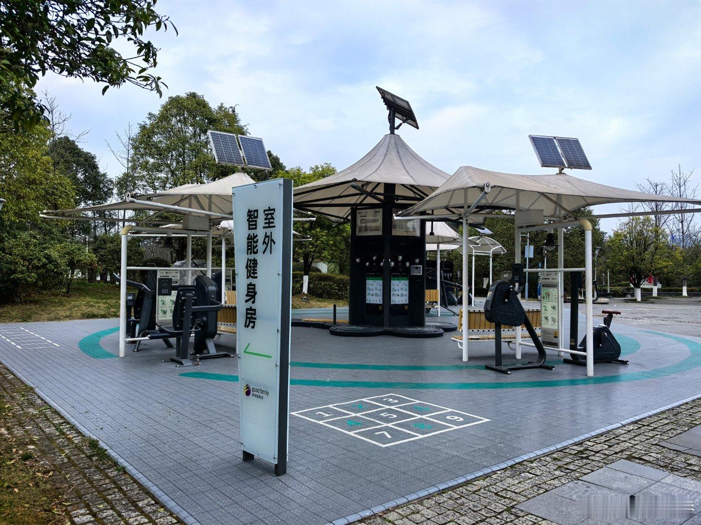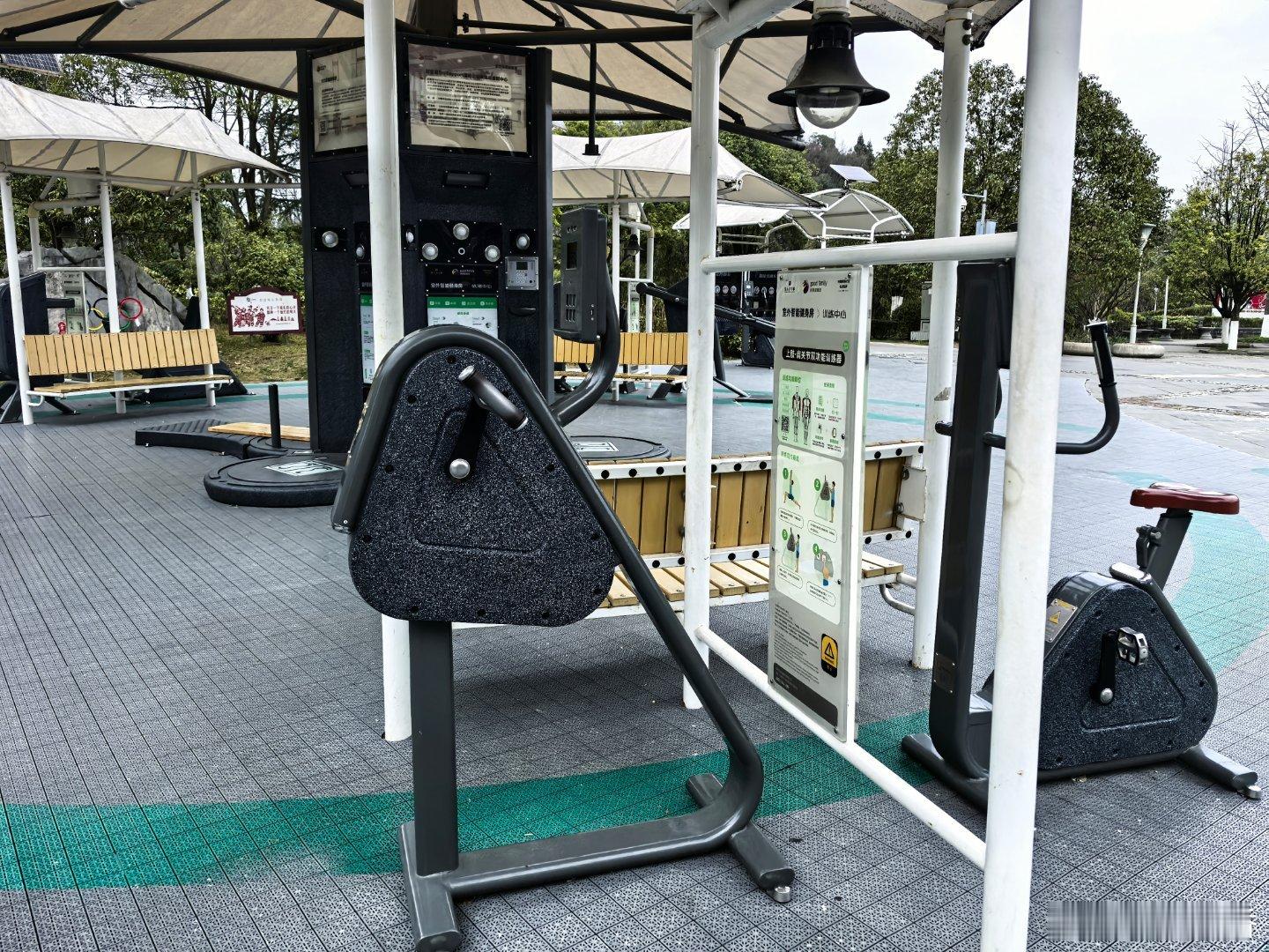 公园里这种共享健身器材真不错,扫码使用,当然不扫也能用只是没有数据象棋围棋也是