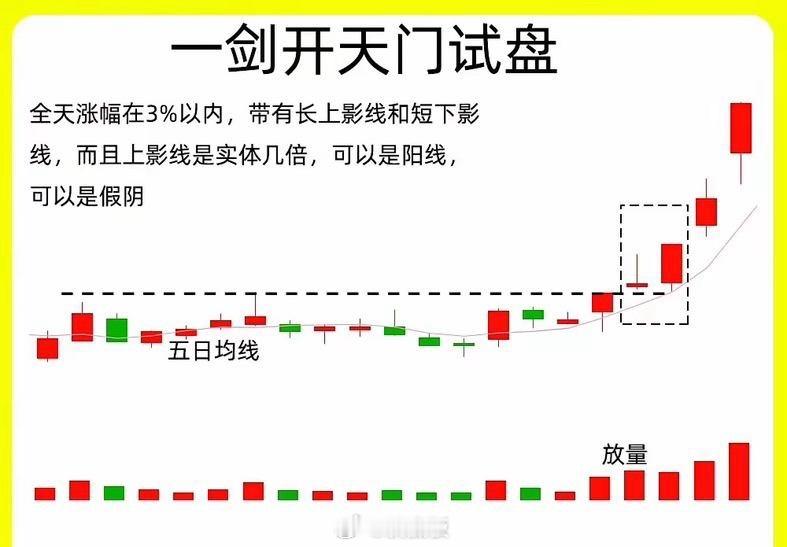 注意了!主力在启动拉升之前,往往都会做一个动作,而且出现的频率还很高!今天给大家分享一剑开天门形态,其实这是主力洗盘的最为常见的试盘。其实很多散户对主力试盘有误解,总认为主力在测试抛压才会去试盘,其实主力在任何阶段都会去试盘,而且主力并不只是向上试盘,也会向下试盘。今天这个形态是主力向上测试抛压的一个形态,我们一起来看看