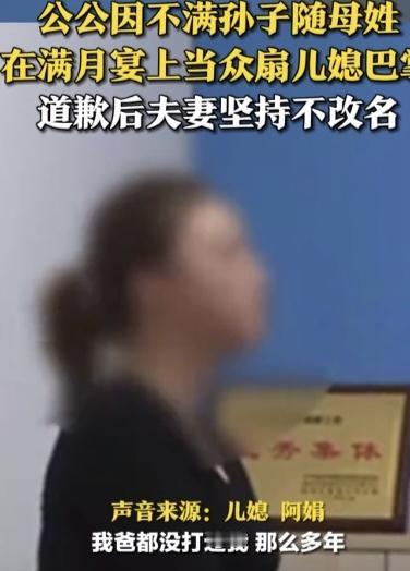 2026年2月,武汉市民阿娟在其次女满月宴期间,因长子跟随母姓,与公公发生冲突并遭对方掌掴。据现场目击者反映,宴席期间亲友齐聚,当事人公公因孙子未随父姓,情绪激动引发冲突。事发后,警方介入调解,涉事公公已向当事人公开致歉,但阿娟明确表示,子女姓氏问题不会做出更改。 依据我国相关法律规定,子女既可随父姓,也可随母姓,父母双方均享有合法平等的权利。此次事件引发社会广泛关注与讨论,公众围绕代际观念差异、传统宗族思想与现代法治理念的冲突展开热议。部分网友认为应尊重年轻夫妻对子女姓氏的自主决定权,也有声音提及家族财产继承等现实关联问题。 截至目前,事件核心当事人之一的丈夫尚未公开发表立场,家庭关系仍处于紧张状态。
