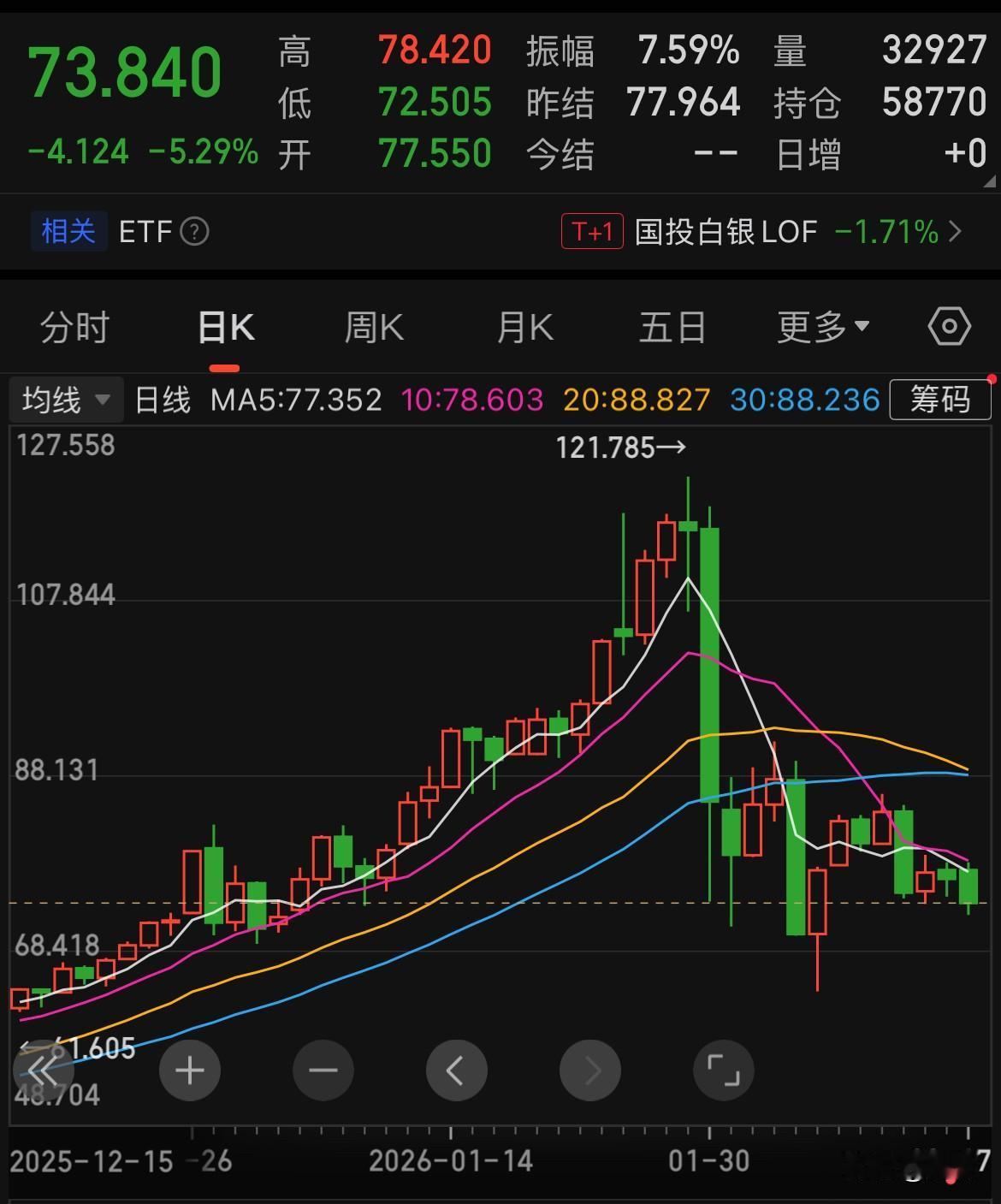现货白银再次大跌超5%,现报73.8美元/盎司。从技术趋势来看,白银现货20日线即将下穿30日线进入下行趋势,看来白银价格下跌趋势不可避免了。