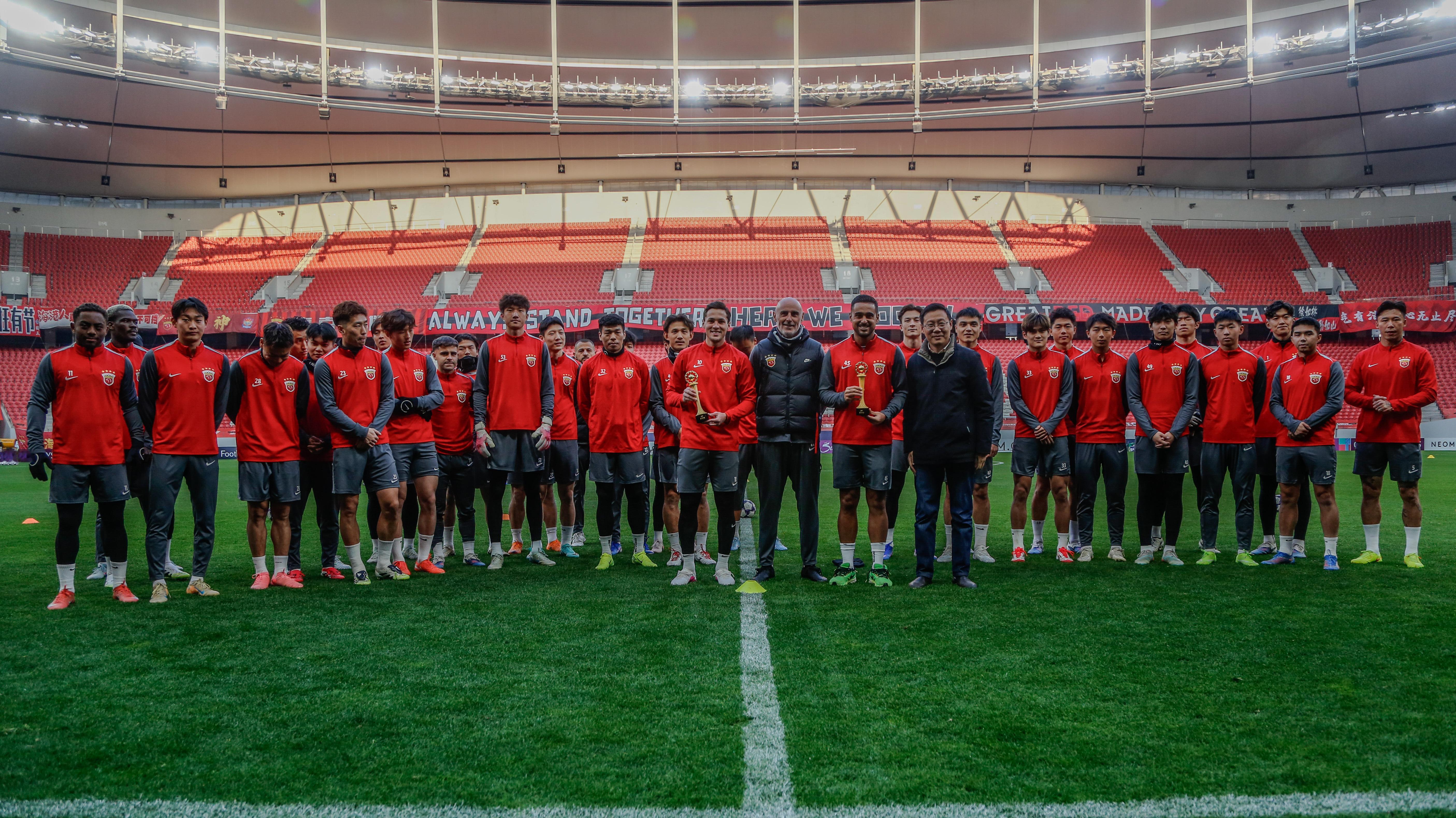 赛前的一些动态穆斯卡特表示亚冠出局很失望,会把明晚的比赛当作一次挑战杨希说自己已经“准备好了”:“队友对我很好,这里还有我之前u23国家队的队友,希望明天把教练的漂亮足球打出来。”穆斯卡特给前来现场报道的媒体记者送上了新春版“伊戈”俱乐部党总支书记、总经理沙良昌在训练前为维塔尔、莱昂纳多颁发上赛季中超最佳阵容奖杯。一个细节是,合影环节,穆斯卡特让沙总站中间,结果愣是被沙总婉拒,并且将穆斯卡特拉到了C位。莱昂纳多还穿着运动鞋,尚无法参加合练。显然距离真正意义上的回归还有一段距离;魏震、克劳德都参与了赛前训练,上轮赛后伤势无碍;蒋光太和武磊并未参加今日赛前合练,前者仍需时日,后者恢复进程积极;王燊超也参加了合练,有关其严重伤病传言不攻自破;明晚新年主场首战,各位“白玉碗”见⚽️上海海港