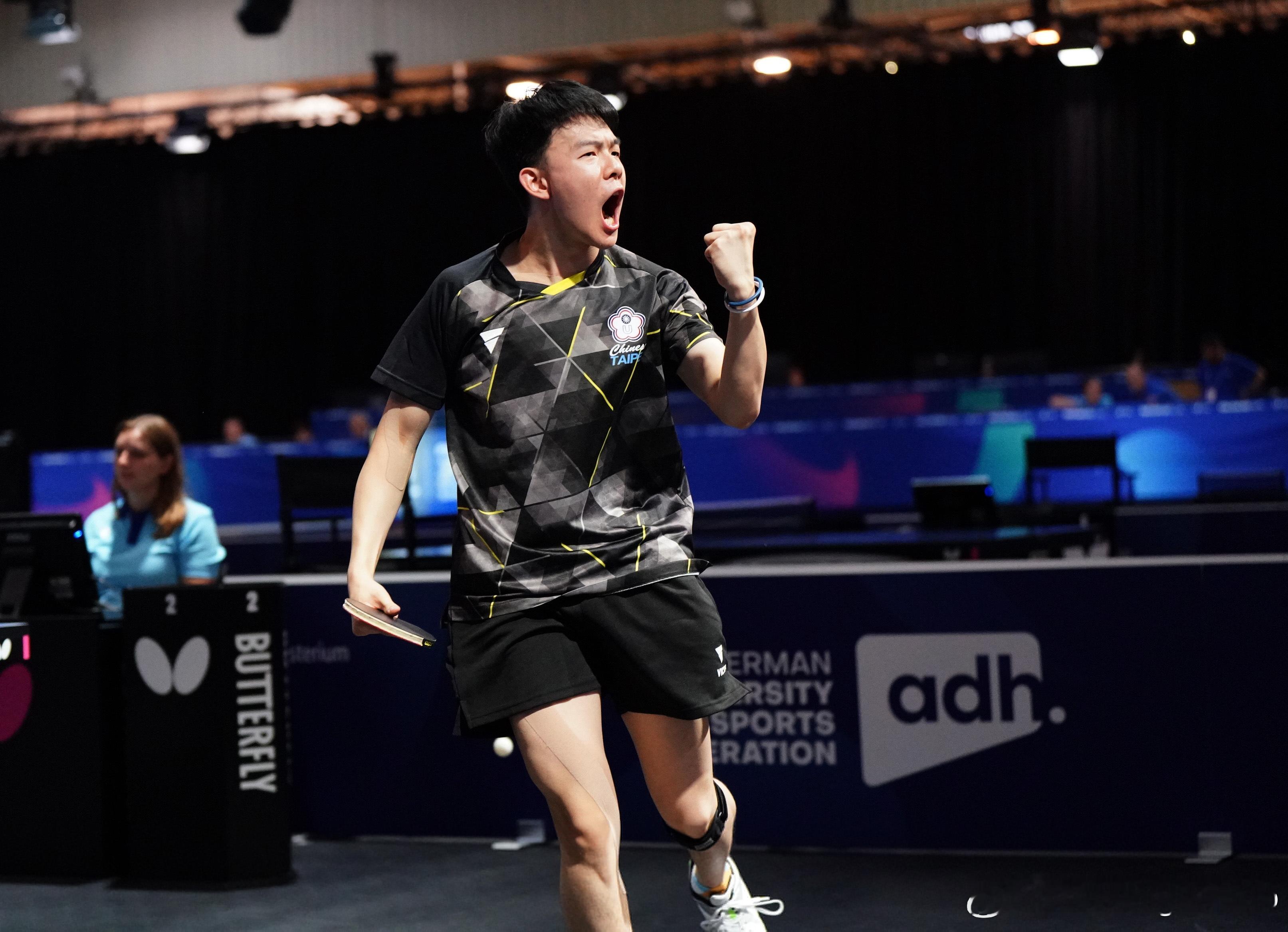 7月高承睿在莱茵鲁尔世界大学运动会男子团体帮助中国台北队摘得历史性首金,尽管决赛因输掉2点陷入自责,但包括4强对日本在内一路稳定输出,是团队能夺冠关键,也被队友肯定。