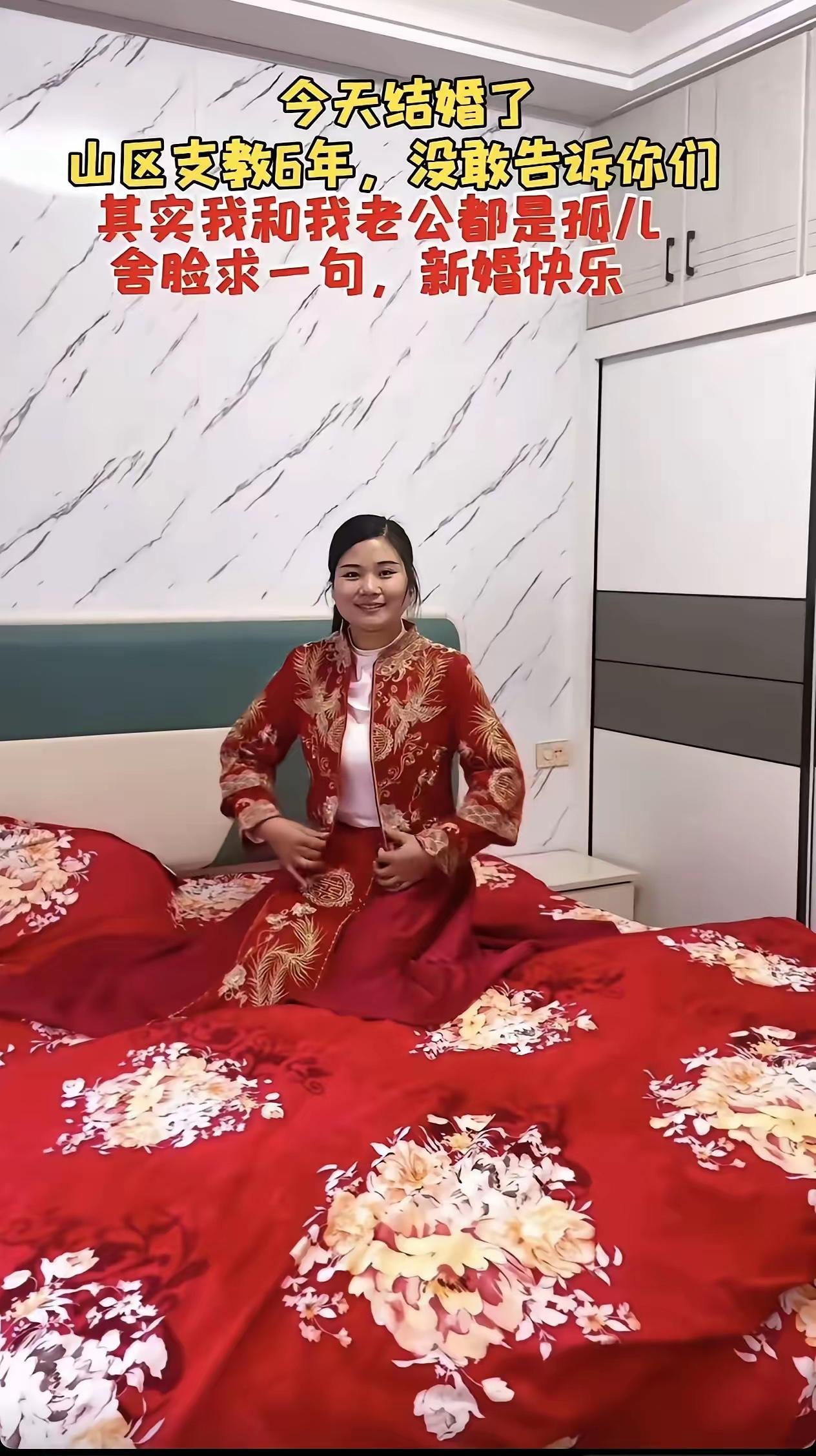 今日成婚,扎根山区支教六载,一直未曾告知大家,其实我和先生皆是孤儿,冒昧恳请大家说一句新婚快乐…… 愿往后诸事顺遂、未来可期,前程似锦、幸福美满,余生所行皆是坦途。 马缔良缘结同心,春风送暖启新程。祝新人如骏马并肩共赴山海,似连理并蒂枝头花开,朝朝暮暮相知相守,岁岁年年福运绵长,丙午马年缔结百年佳话,琴瑟和鸣谱写一世华章。 马年送喜,恭祝一对璧人新婚快乐! 看完这段话,心里瞬间被温柔和感动填满。两个从小没有依靠的人,没有被生活的坎坷打败,反而把自己所有的温柔与光亮,都献给了大山里的孩子。六年支教时光,他们把青春留在了偏远山区,用知识点亮孩子们的未来,自己却默默承受着无父无母的孤单,连人生最重要的婚礼,都只能轻声向陌生人讨要一句祝福。 他们没有优渥的家境,没有盛大的排场,没有亲人在身旁见证,却拥有最珍贵的善良与坚守。别人选择奔赴繁华都市,他们选择扎根山区;别人追求安稳舒适,他们选择默默奉献。两个同样经历过孤单的灵魂,在大山里相遇、相知、相爱,彼此成为对方的家人,这份感情比任何金玉良缘都更加动人。 他们不是不渴望亲人的祝福,只是早已习惯了独自坚强。一句简单的“新婚快乐”,对他们而言,不是客套,而是来自世间的温暖,是陌生人给予的善意,是对他们六年坚守的认可,是对他们往后余生的期盼。 这世间最美好的爱情,从来不是锦衣玉食,而是风雨同舟;最动人的婚姻,从来不是轰轰烈烈,而是彼此照亮。他们照亮了山区孩子的前路,也照亮了彼此的人生,用善良与坚守,书写了最纯粹、最美好的爱情模样。 没有父母的叮嘱,却有千万人的祝福;没有盛大的仪式,却有最干净的灵魂。他们值得世间所有的美好,值得岁岁年年的平安,值得朝朝暮暮的幸福。 愿这对善良的新人,往后不再有孤单,余生皆有良人伴,所行之路皆是坦途,所遇之人皆为温柔,在大山里继续发光,也在彼此的陪伴里,永远幸福。 各位读者你们怎么看?欢迎在评论区讨论。 支教爱情 支教