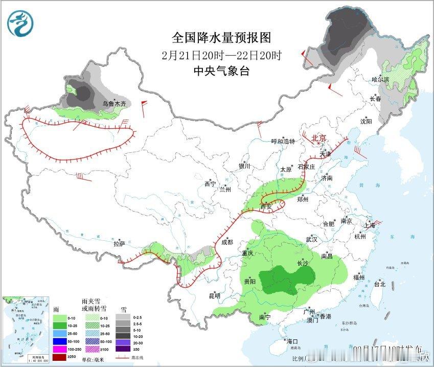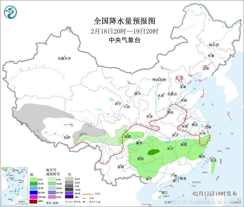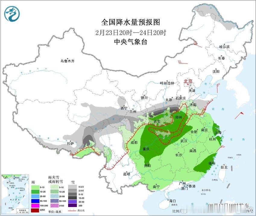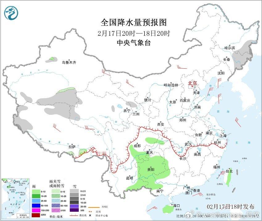 陕西河南一带的降水相态复杂,可能出现雨转雪。后期临近关注冷空气的强度和南下速度,如果转雪时间早一些,雨雪分成,雪的比例高,降雪可能很强。但如果冷空气南下慢一些,降温慢一些,可能就是雨为主,雪的比例低,降雪就弱。但大范围降水,可能影响春运返程。后期继续关注。